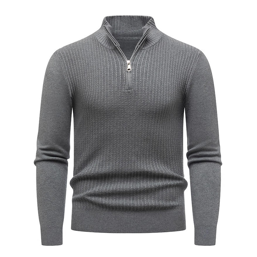 Herren stickad tröja med stilfull ståkrage och modern dragkedja Eva Jonsson