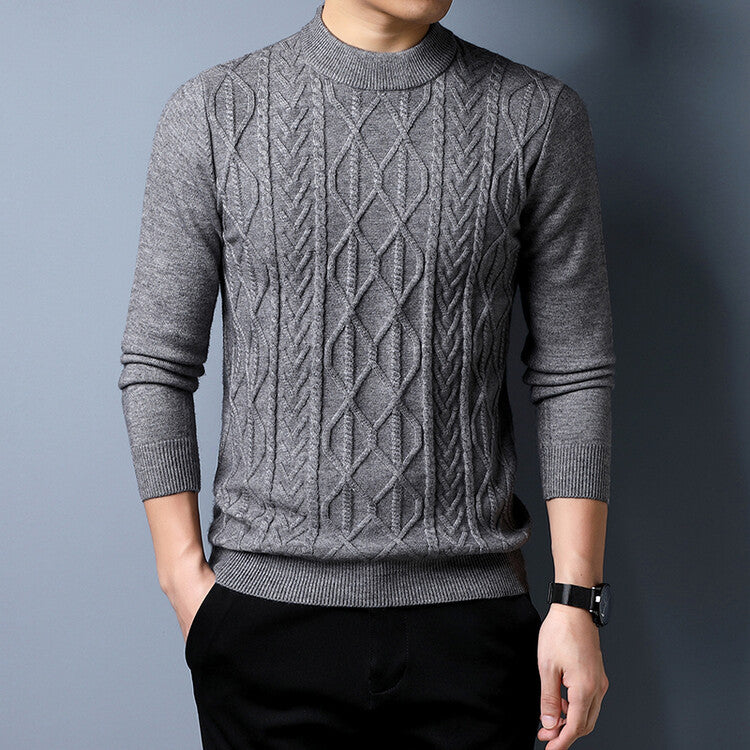 Herren stickad tröja med modern flätmönster och ståkrage Eva Jonsson