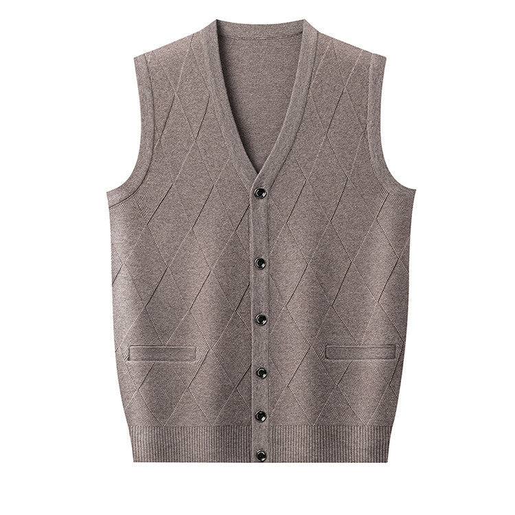 Herren stickad väst med V-hals och klassiskt rombmönster Eva Jonsson