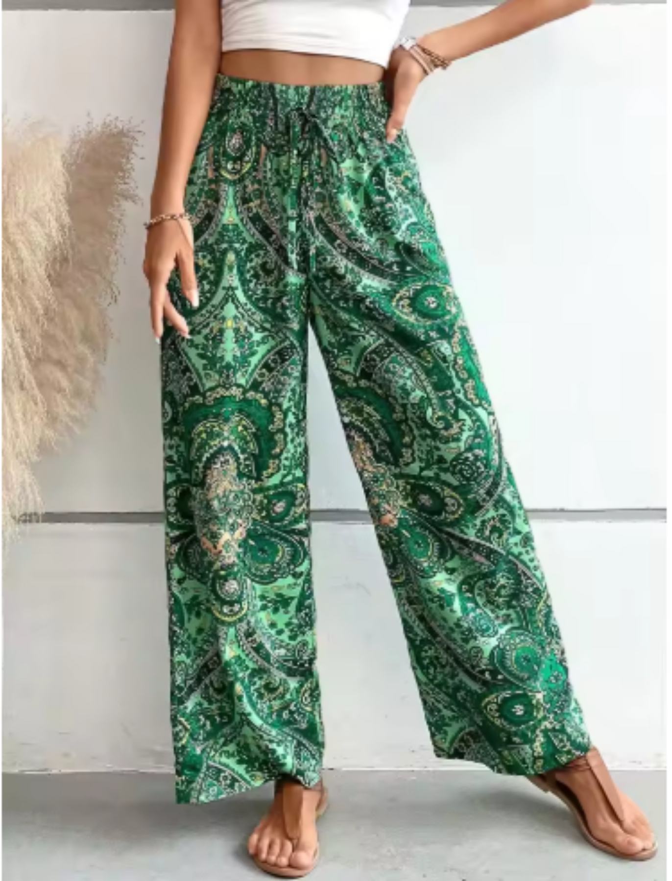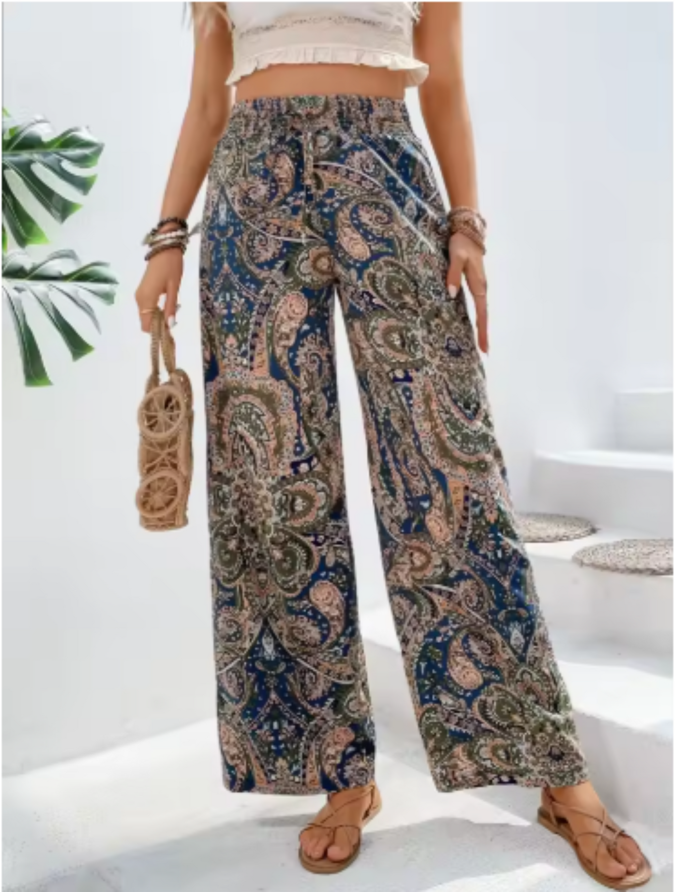 Sommarbyxor | Paisleymönster | Hög midja | Bohobyxor | Byxor med vida ben