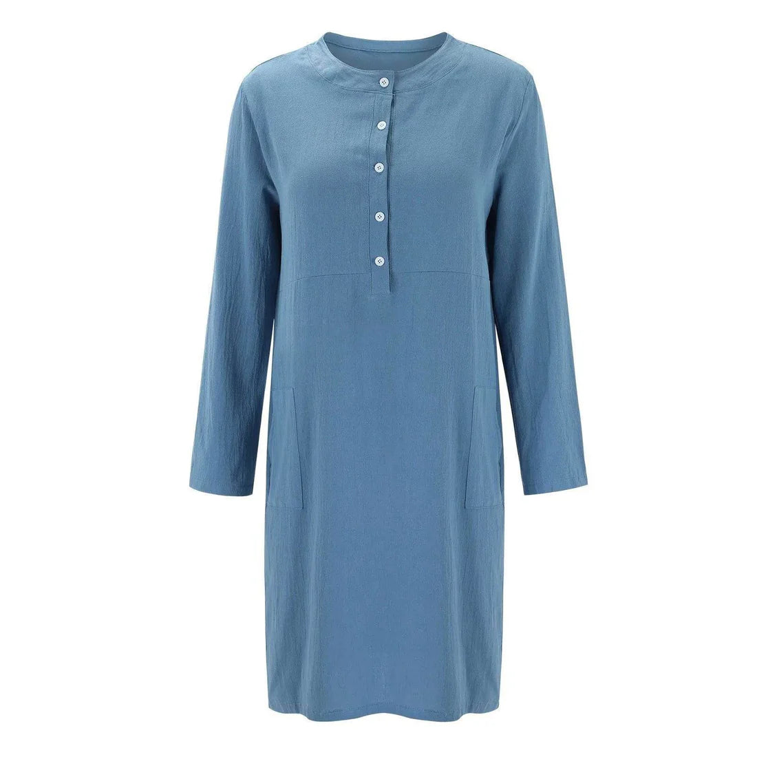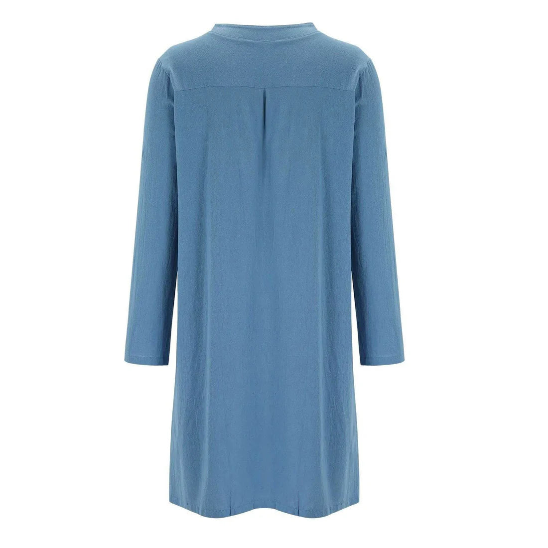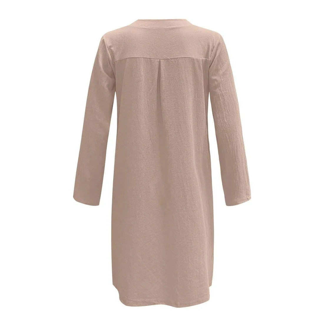 Denna långärmade klänning kombinerar bomullens mjukhet med linets eleganta struktur, vilket ger en lätt och bekväm outfit som samtidigt ser sofistikerad ut. Perfekt för dagar när du vill klä dig enkelt men ändå fashionabelt, med en design som låter dig röra dig fritt och känna dig bekväm hela dagen.