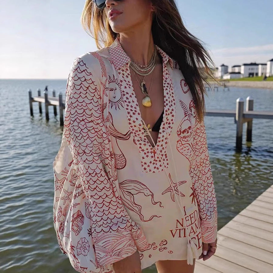 Damernas luftiga strandblus med unika mönsterdetaljer Eva Jonsson