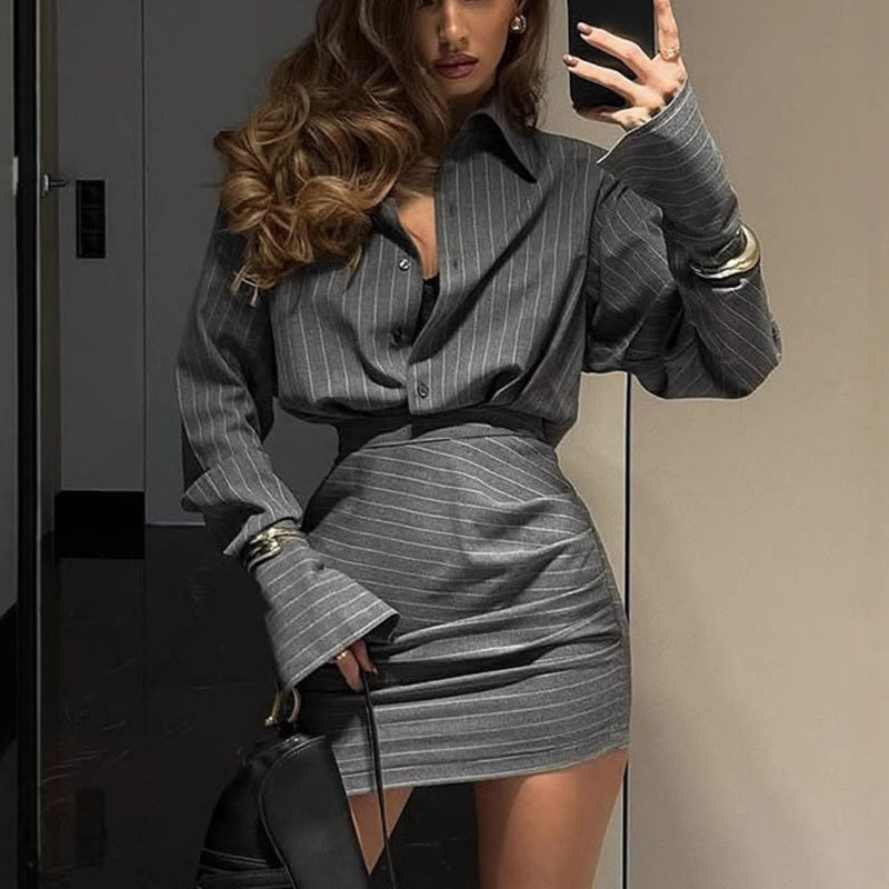 Upptäck den eleganta dam skjortklänningen från Eva Jonsson, som erbjuder den perfekta kombinationen av stil och komfort. Denna klänning utmärker sig med sin attraktiva randiga design och stiliga detaljer som utstrålar både avslappnadhet och elegans.