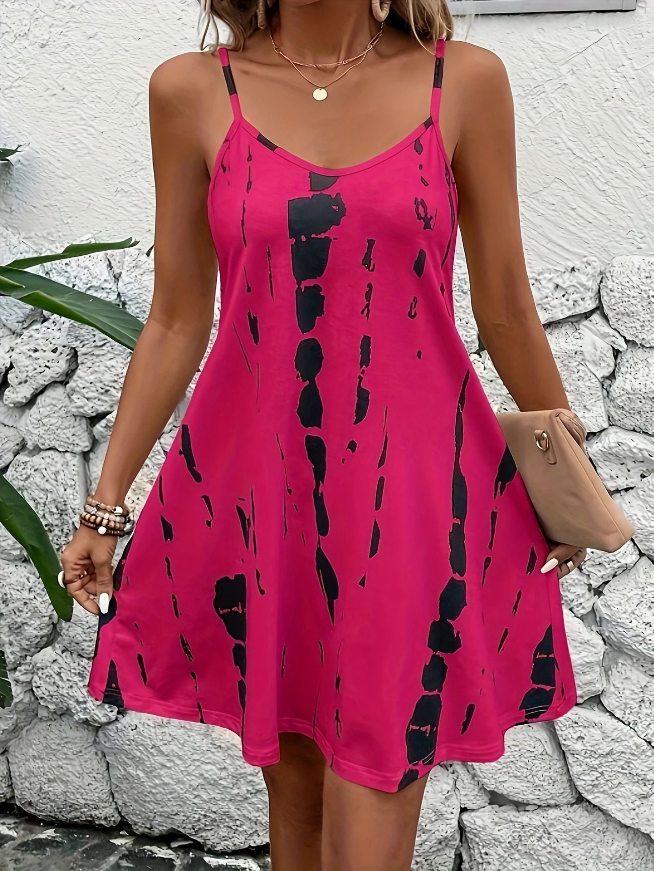 Upptäck vår vackra A-linjig klänning med spaghettiband som ger din sommarlook en touch av elegans. Denna klänning utmärker sig med ett unikt och iögonfallande mönster som drar allas blickar till sig.