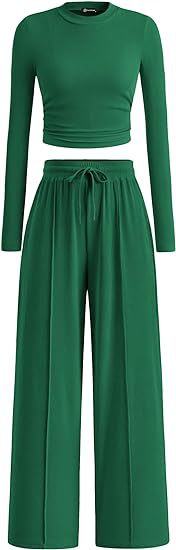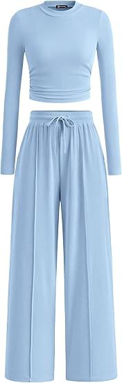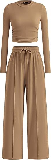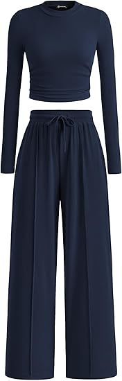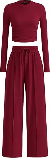 Trendig design: Den förlängda snittet på crop-topen samt de avslappnade palazzo-byxorna ger en modern och avslappnad look.
