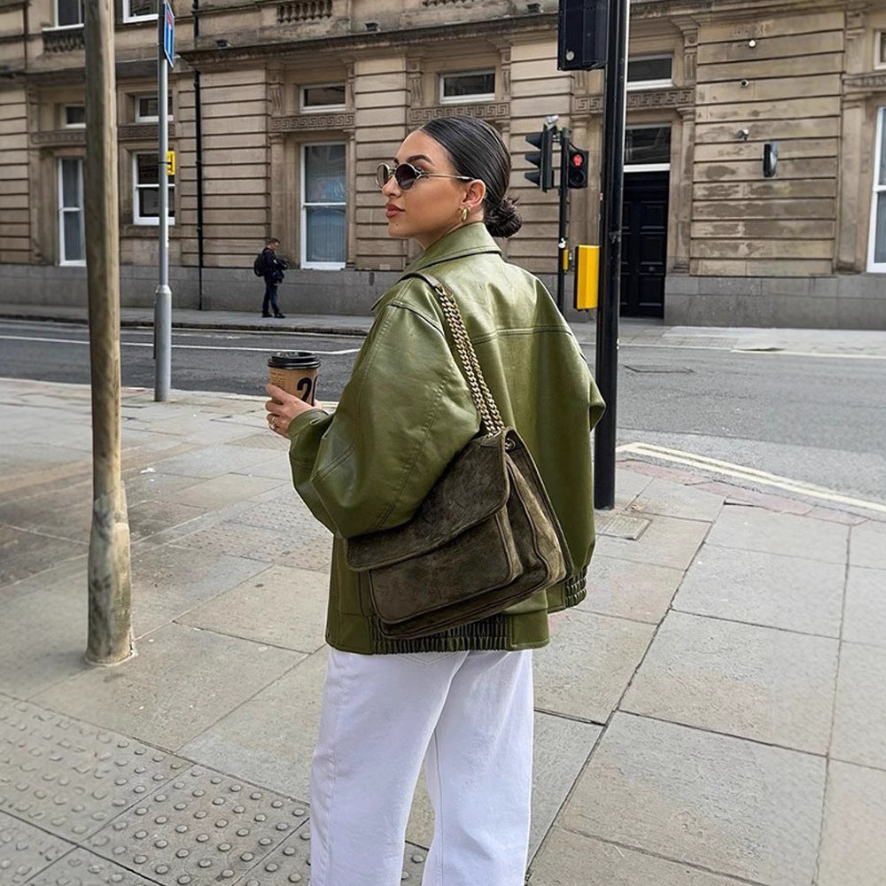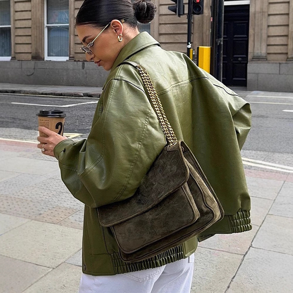 Denna trendiga damövergångsjacka från Eva Jonsson förenar stil och komfort i en elegant design. Jackan försätter med sina voluminösa ärmar, som erbjuder en trendig look och rörelsefrihet. Tillverkad av högkvalitativ konstläder är den både lätt och hållbar. Idealisk för växlande väderförhållanden, ser den till att du alltid är välklädd.
