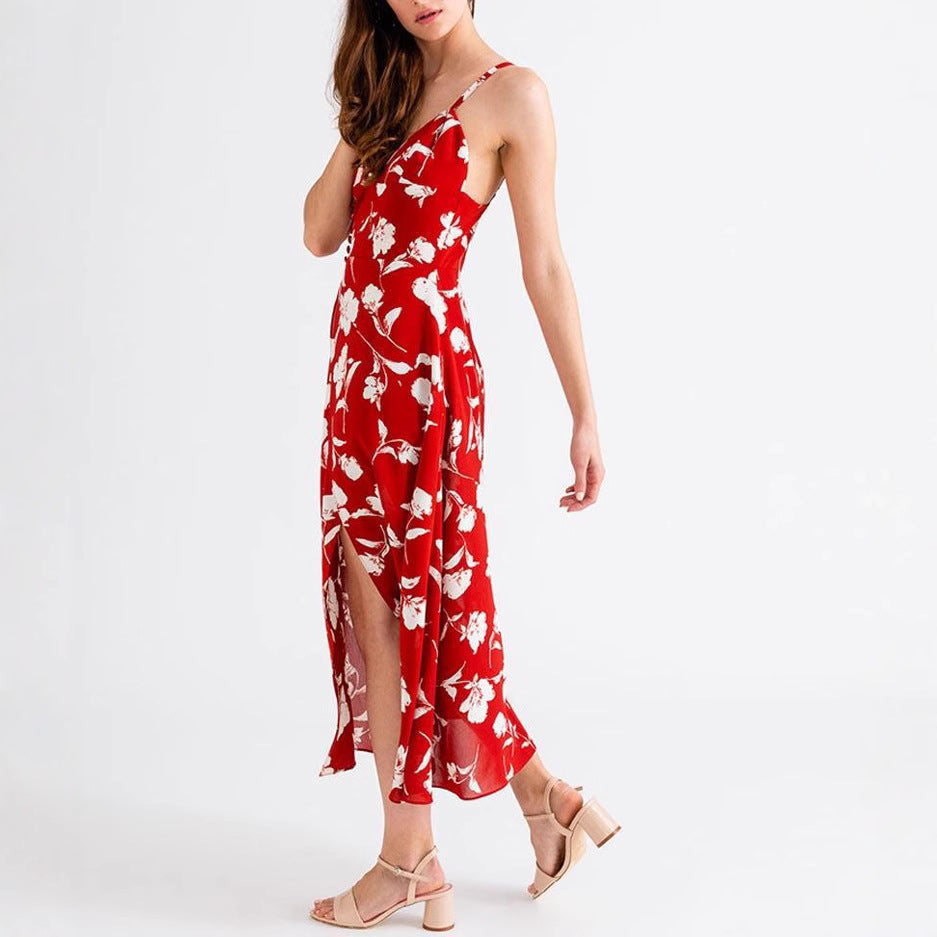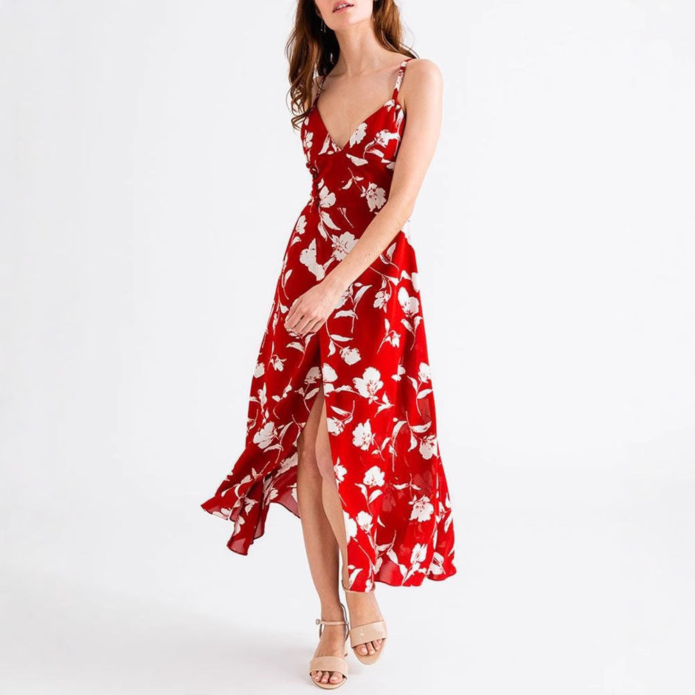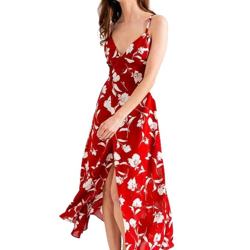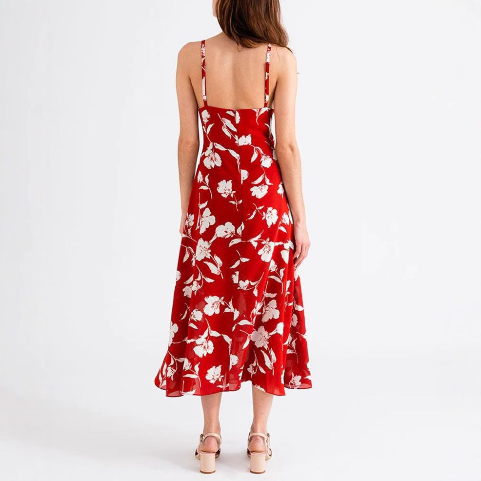 Floral design: Det tilltalande blommönstret ger klänningen en fräsch och livfull ton, idealisk för sommarfester eller picknickar.