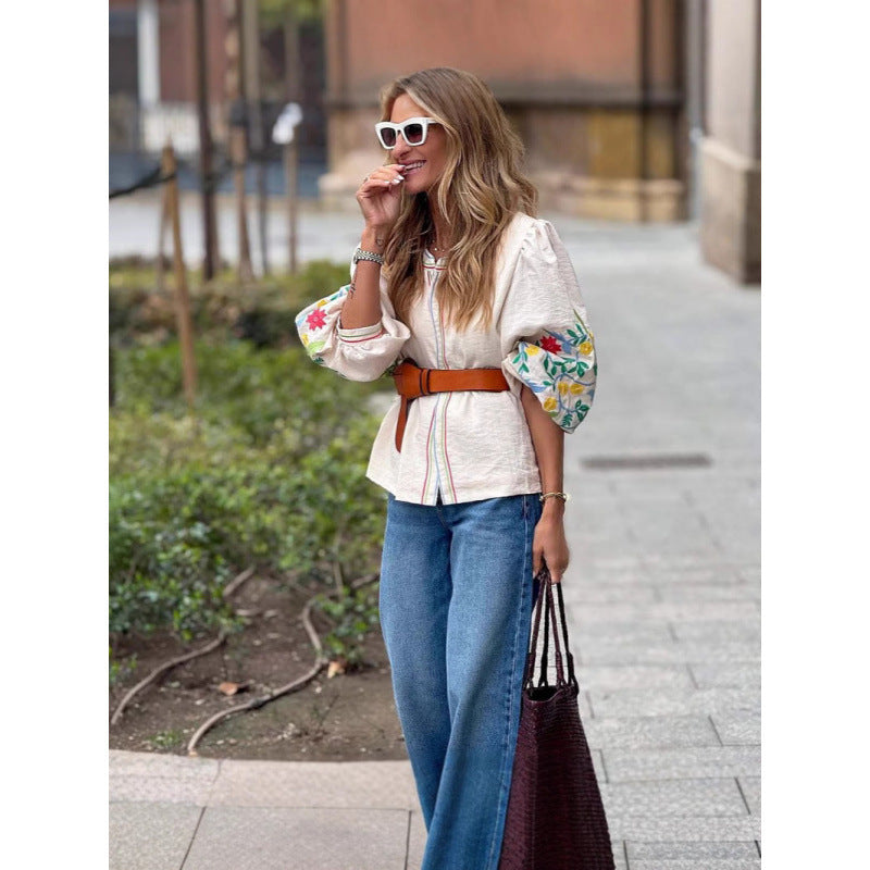 Unik design: Blusen har livfulla broderier som tillför en touch av färg och glädje till din outfit.