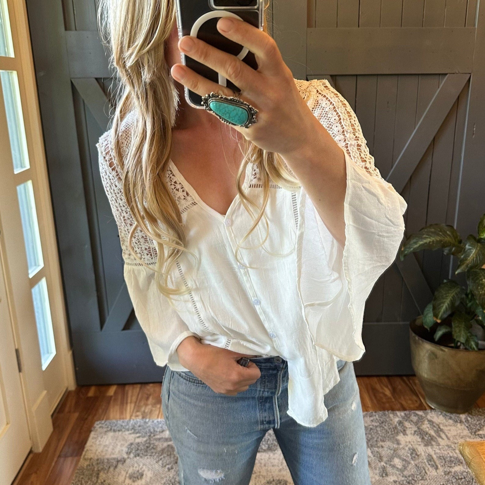 Damblus med spetsdetaljer och avslappnad passform Eva Jonsson