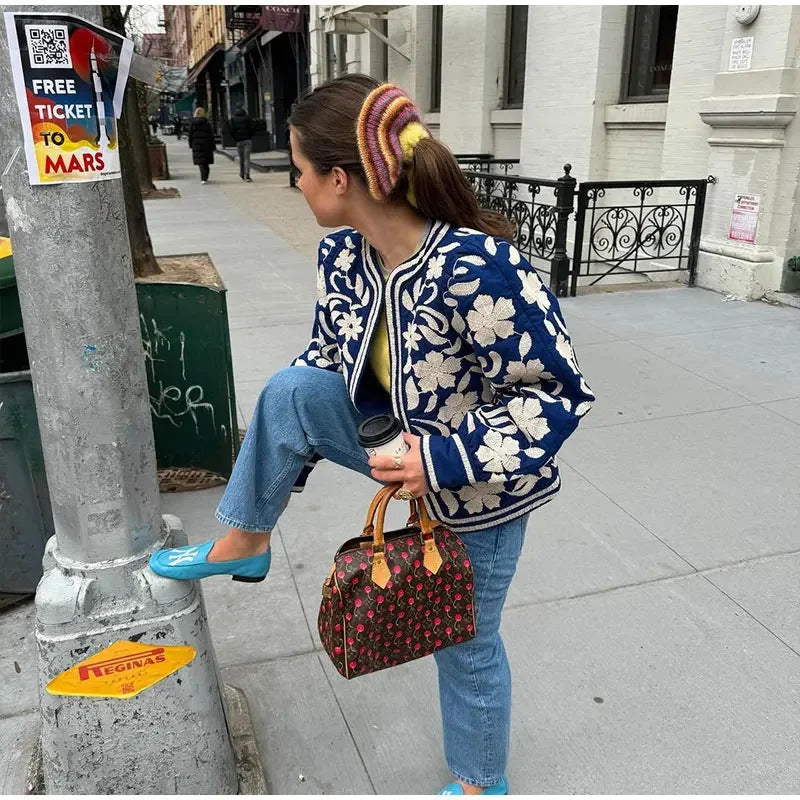 Stiligt blommönster: Med intrikata broderier och ett kreativt mönster ger denna jacka varje outfit en glad ton och drar blickarna till sig.