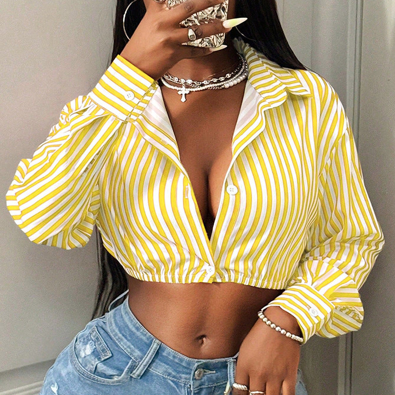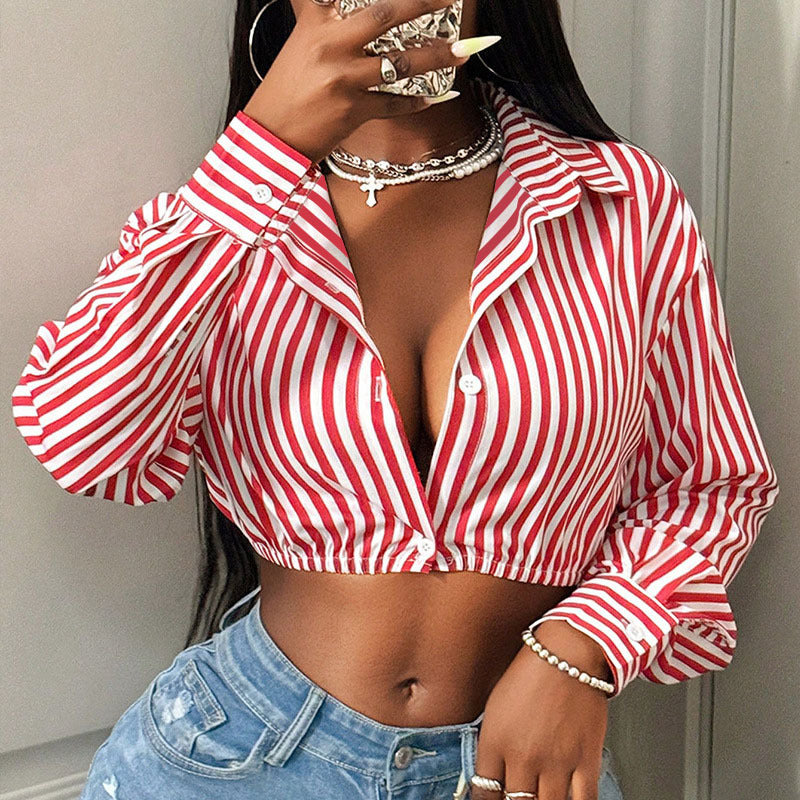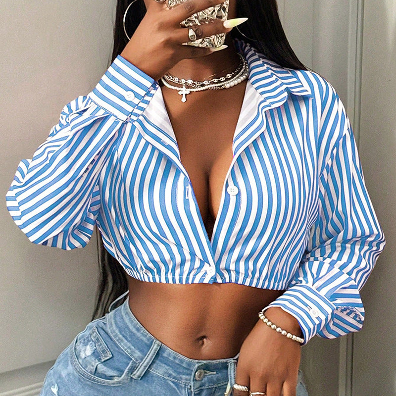 Upptäck vår trendiga damcropped skjorta med breda ränder, som ger din look en fräsch touch. Denna skjorta kombinerar komfort med stil och passar perfekt för den moderna vardagen.