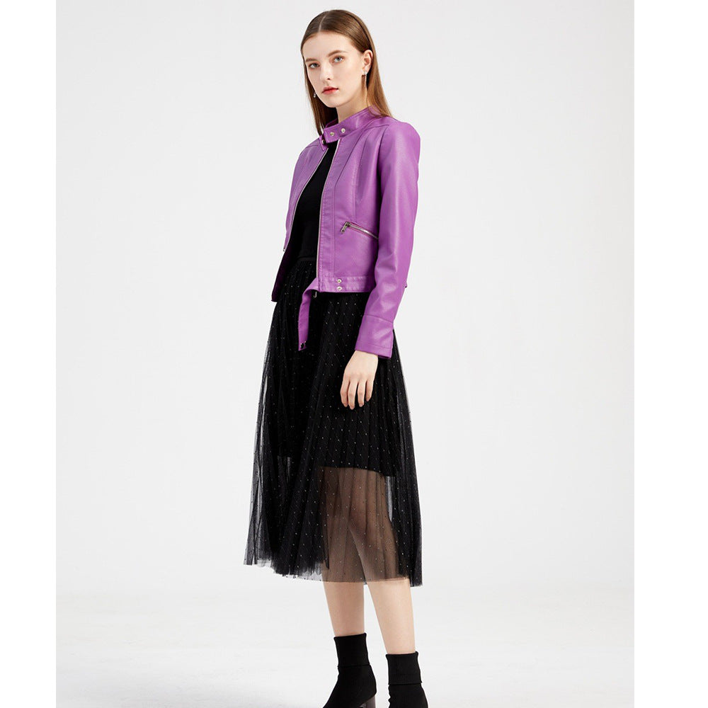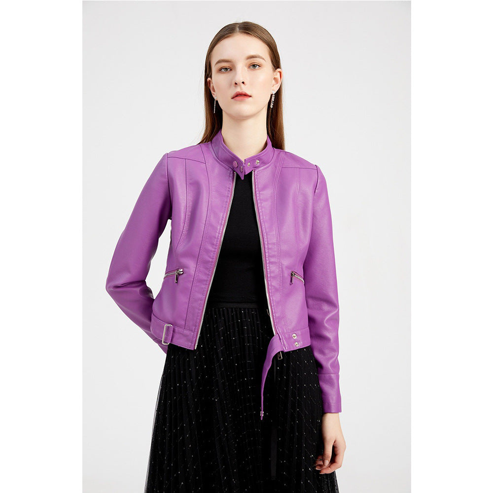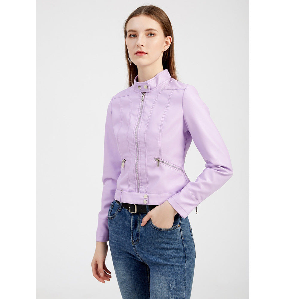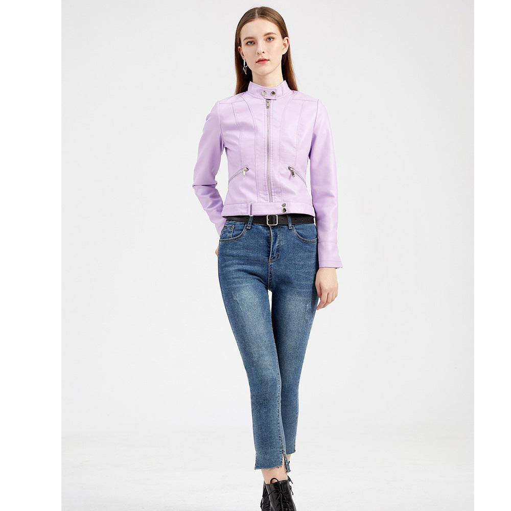 Damer elegant Bikerjacka med hög krage och dragkedjefickor Eva Jonsson