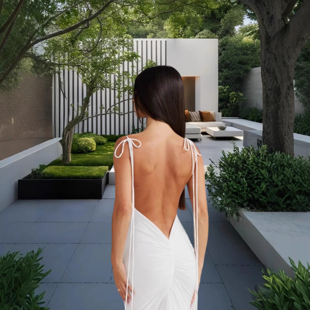 Knytbands: Eleganta knytband vid axlarna som erbjuder både justering och stil.