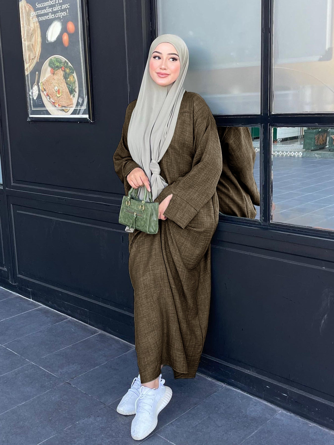 Modeinspirerade detaljer: Särskilda inslag som tydliga sömmar och generösa ärmar ger kaftanen ett modernt utseende.