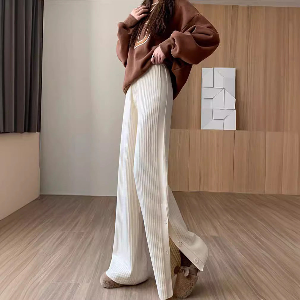 Med dessa eleganta stickade byxor kan du uppgradera din garderob och samtidigt förbli stilfull och bekväm. Perfekt för modeintresserade kvinnor som söker det speciella.