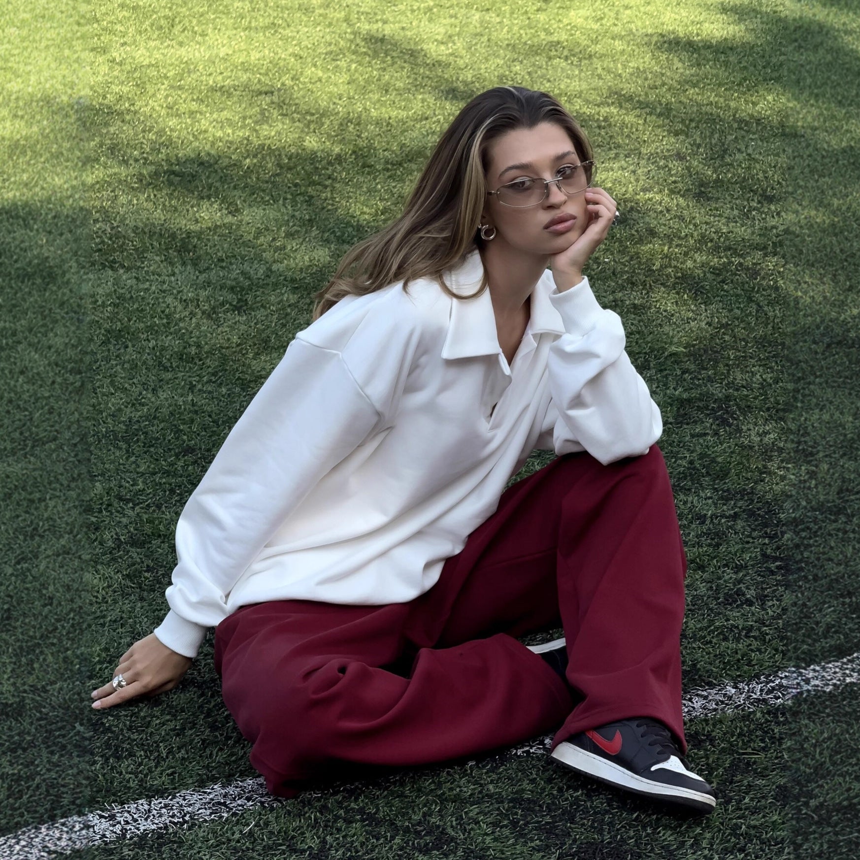 Upptäck den perfekta ensemble för avslappnade dagar och sportiga aktiviteter med vår dam casual poloshirt och vida byxor set Eva Jonsson. Denna set förenar stil och komfort på ett idealiskt sätt.