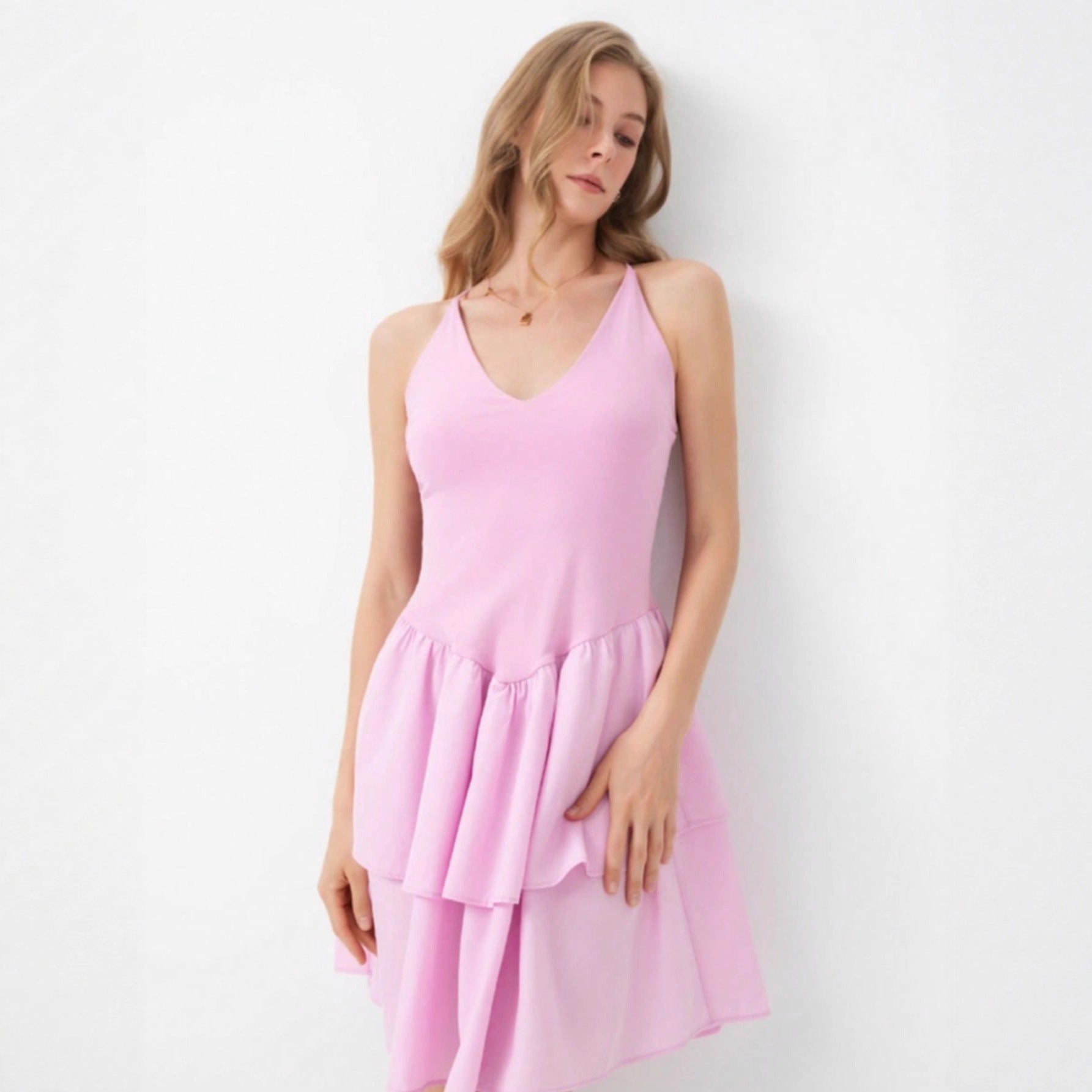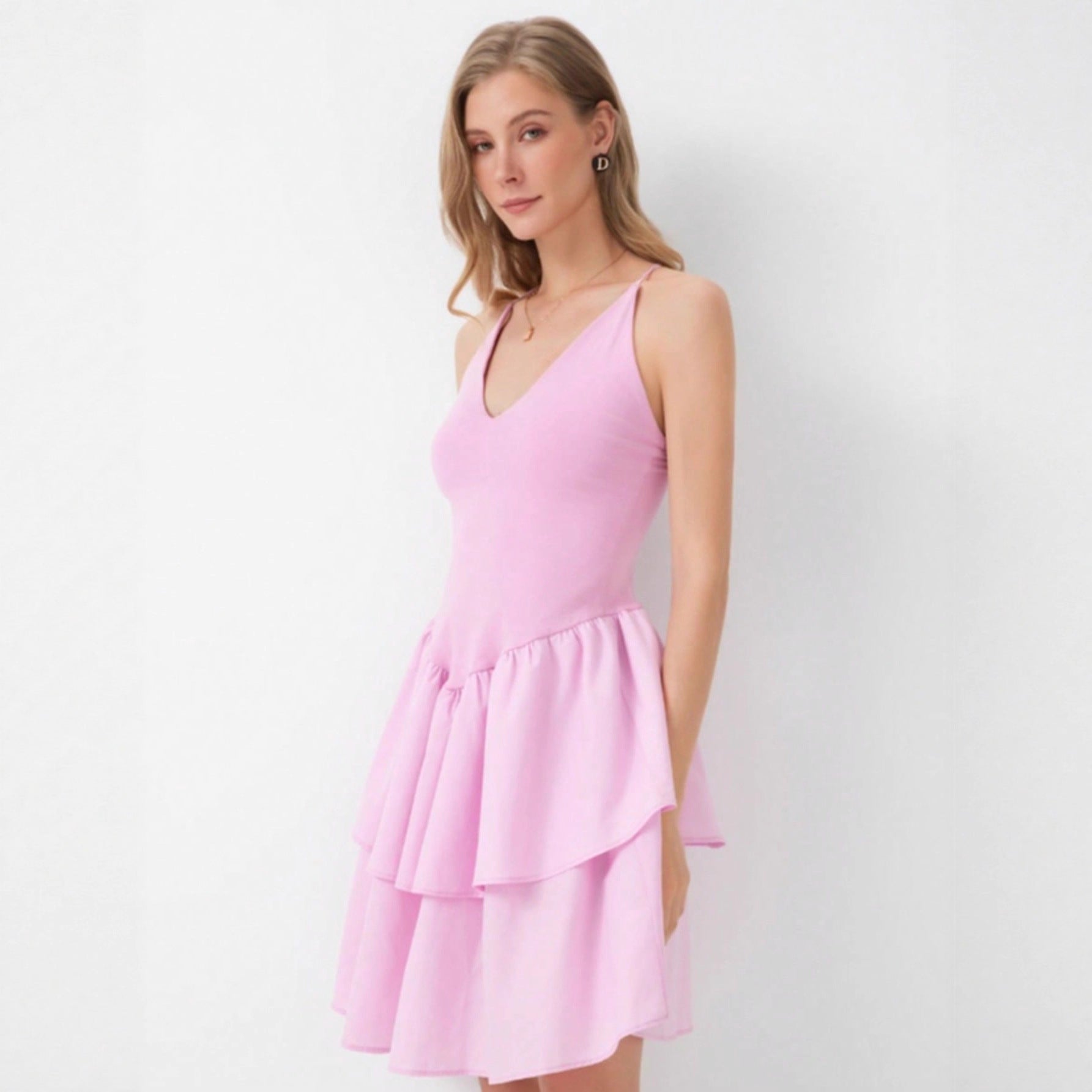 • Design: Med en vacker V-halsringning och en trendig volangkant som ger en lekfull silhuett.