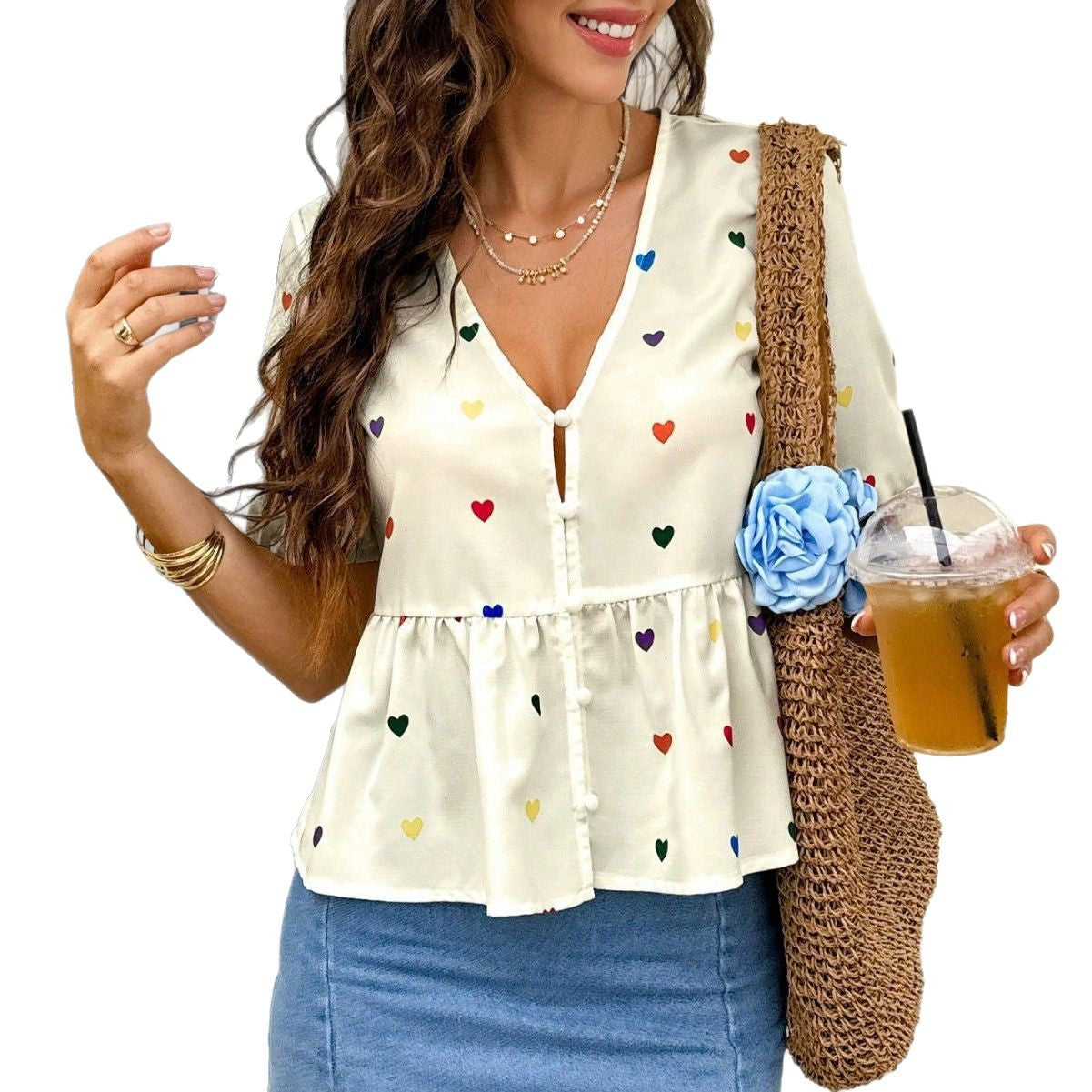 Upptäck vår lekfulla blus för damer med hjärtan och midjefasong, Eva Jonsson, som är idealisk för varma dagar. Denna blus kombinerar komfort med modiskt flair och erbjuder en unik touch till varje outfit.