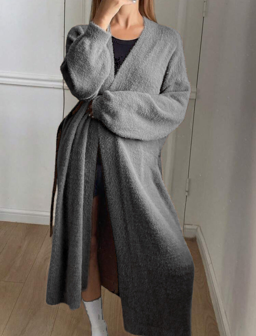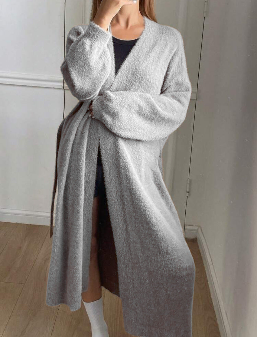 Upptäck den ultimata komforten med vår dam lång, fluffig cardigan med bindebälte och V-ringning från Eva Jonsson. Denna cardigan är det perfekta plagget för kyligare dagar och erbjuder både stil och mysighet.
