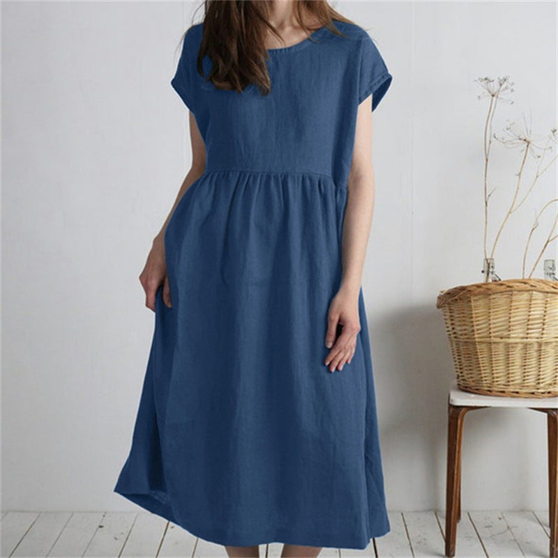 Uringning: Den runda halsringningen ger klänningen en tidlös utstrålning, medan de korta ärmarna ger extra komfort.