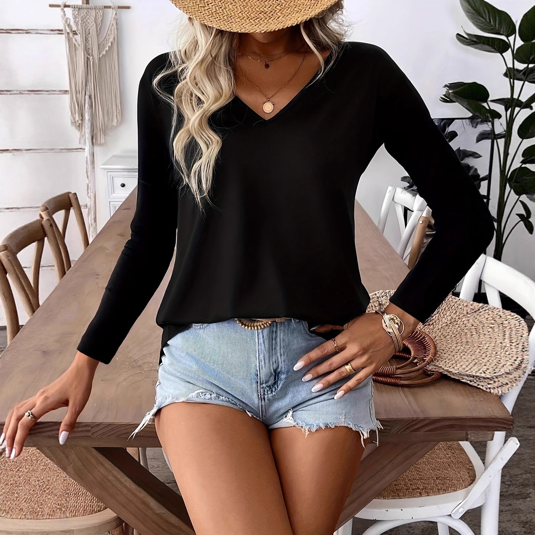 Denna stiliga långärmade skjorta från Eva Jonsson är ett perfekt komplement till din garderob. Med sin enkla, men eleganta design och V-hals erbjuder den både komfort och stil.