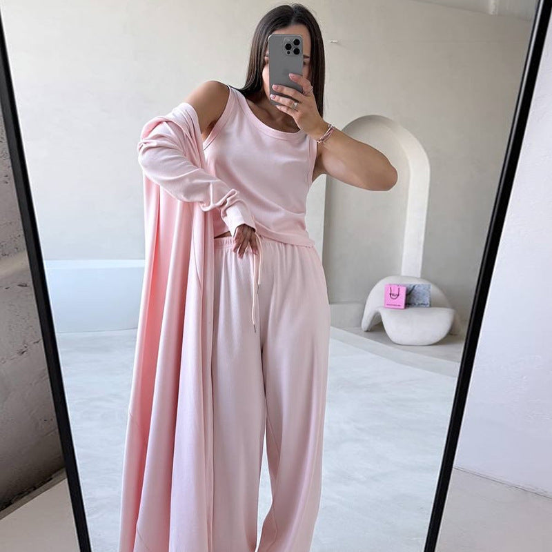 Komplettera din garderob med denna tidlösa loungewear-kombination och njut av den perfekta mixen av komfort och stil.