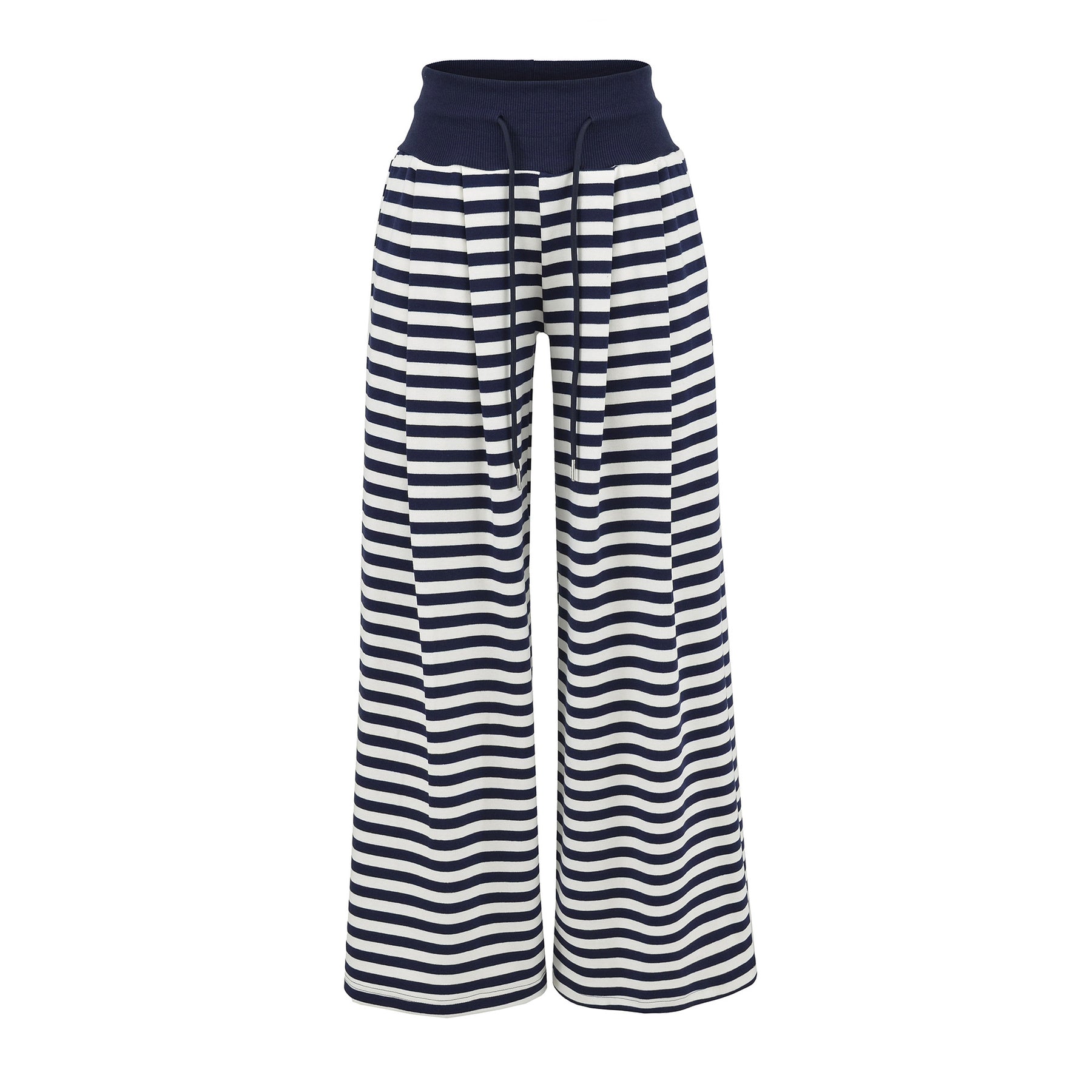 Upptäck de nya damerna breda randiga byxorna från Eva Jonsson, som erbjuder både komfort och stil i varje situation. Dessa eleganta byxor har ett moderiktigt randmönster och en hög midja som ger en smickrande silhuett.