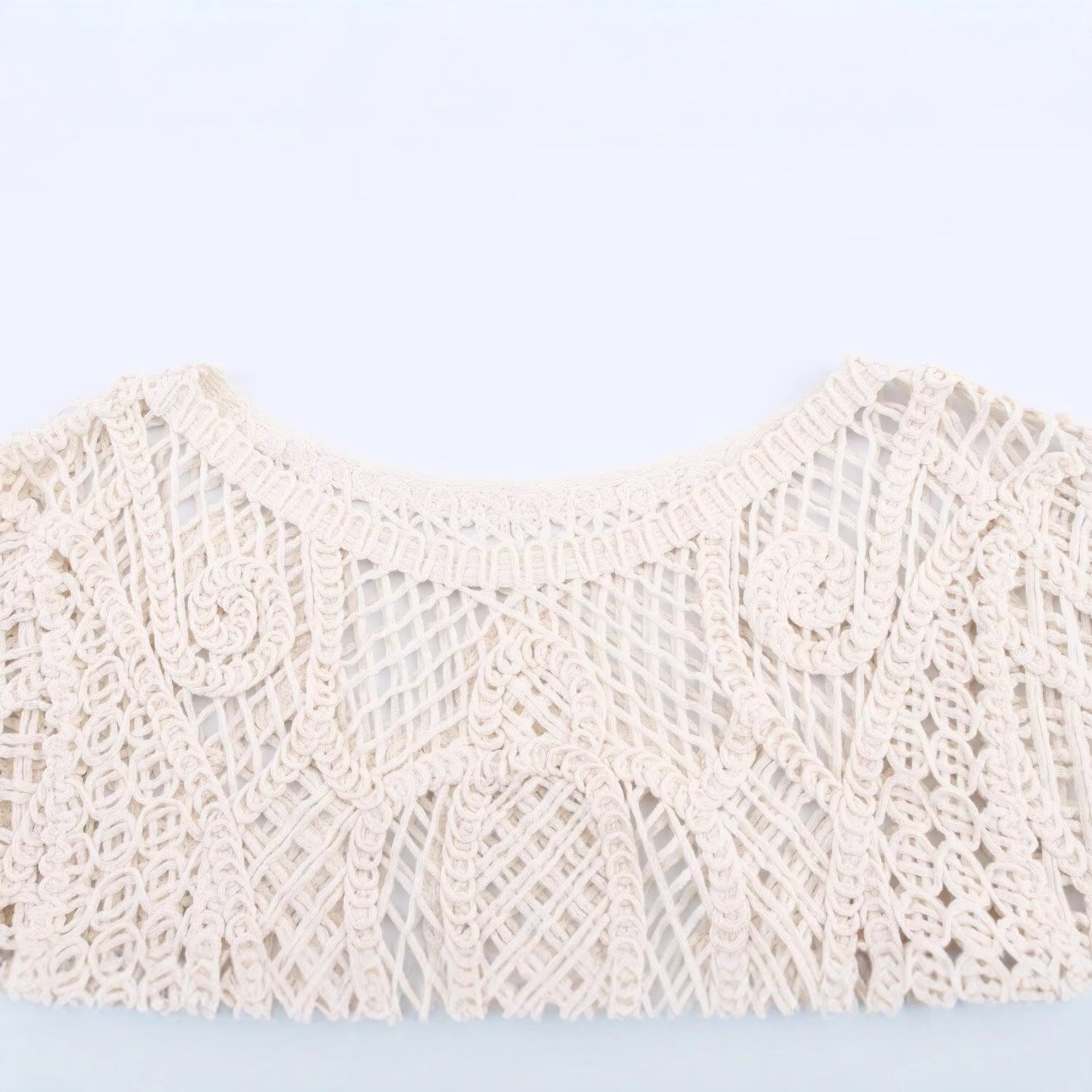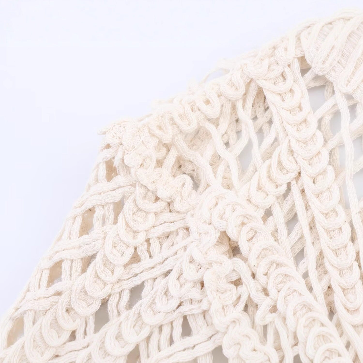 Upptäck vår stiliga damvirkade topp, som med sin luftiga och fina struktur är idealisk för varma sommardagar. Med en feminin rund halsringning och långa ärmar erbjuder den en unik look som passar vid alla tillfällen.