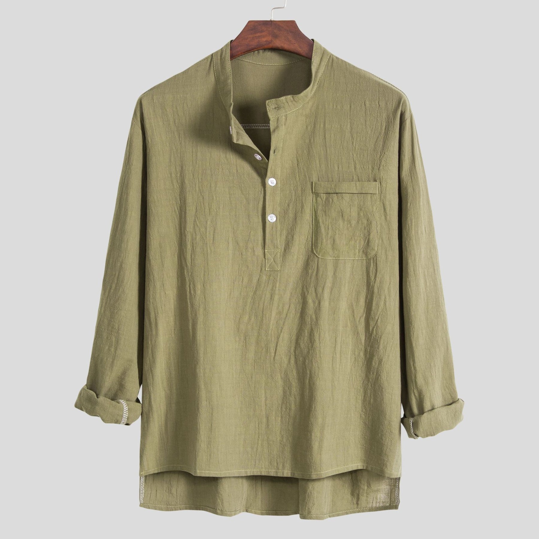 Moderna Henley-öppning: Den diskreta knapplisten ger en stilfull men ändå ledig design.