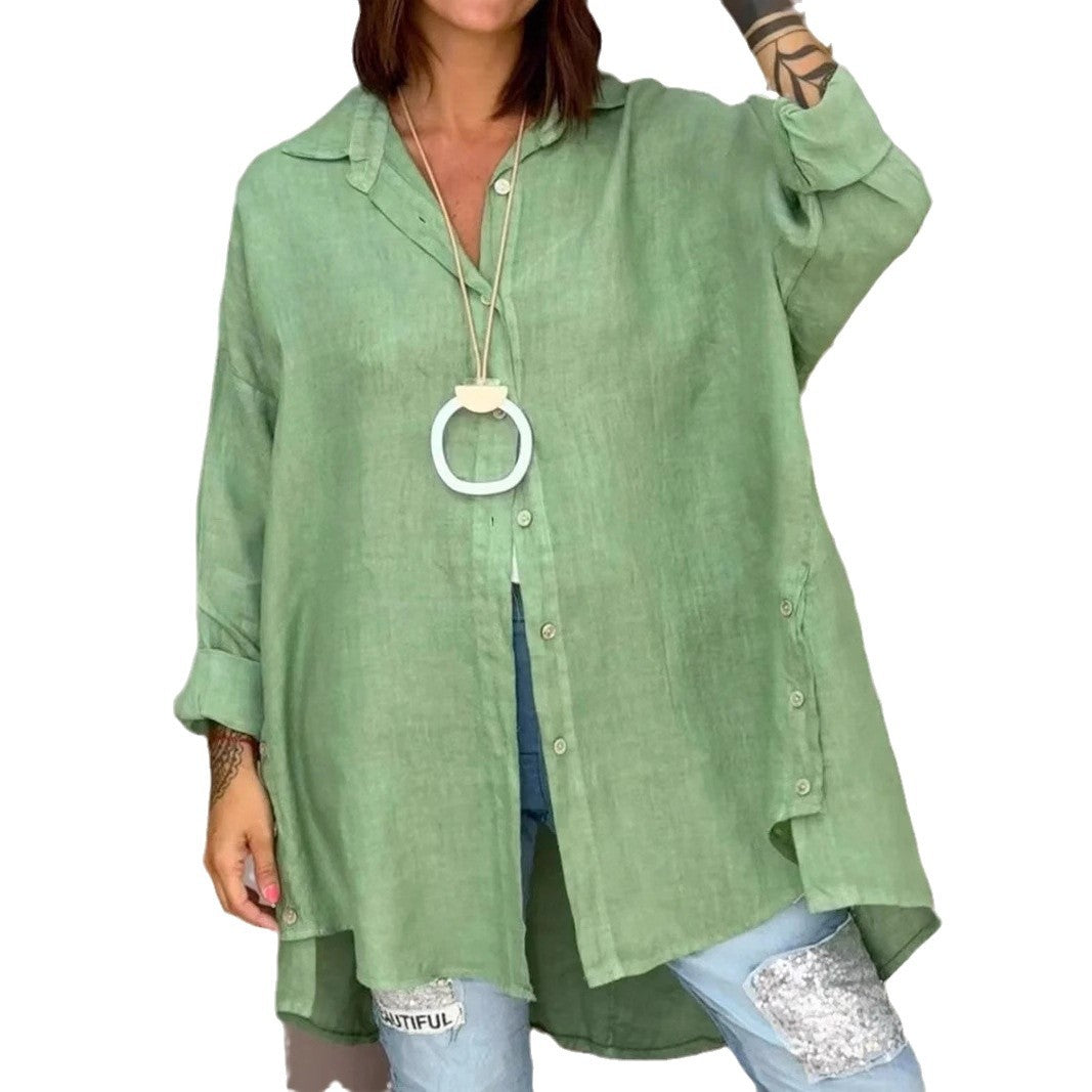 Damernas Lätt långärmad blus i vävd linne Eva Jonsson