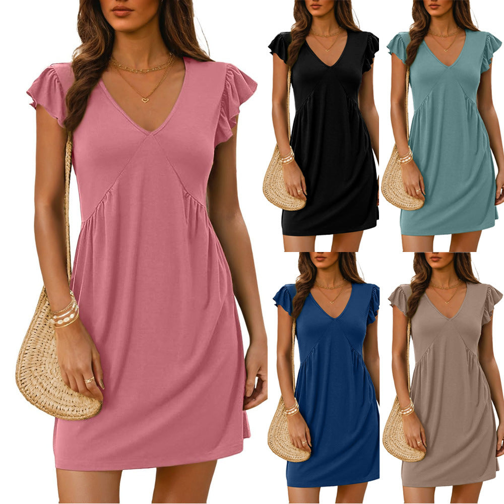 Upptäck vår kvinnliga avslappnade sommarklänning med volangdetaljer