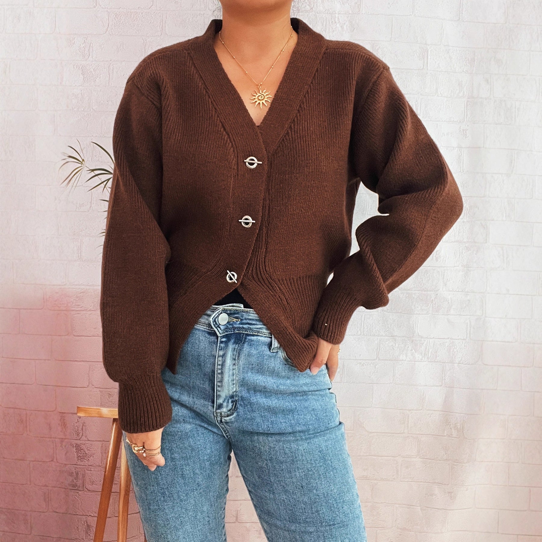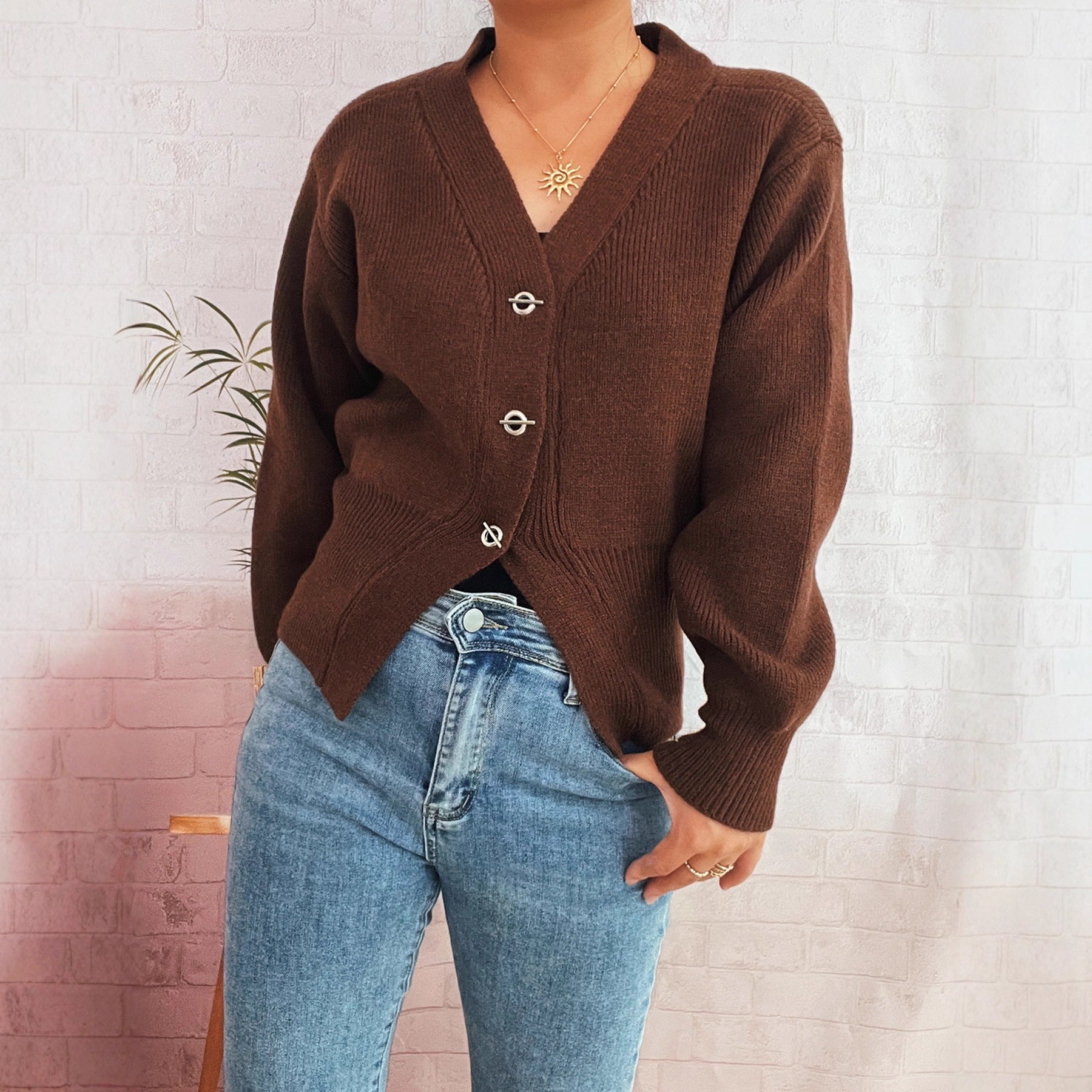 Dam lätt cardigan med djup V-ringning och dekorativa knappar Eva Jonsson