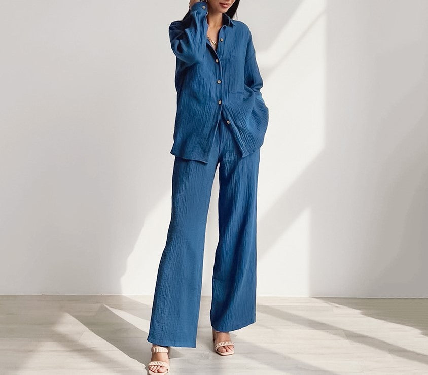 Damernas luftiga tvådelade set med strukturerad tyg Eva Jonsson