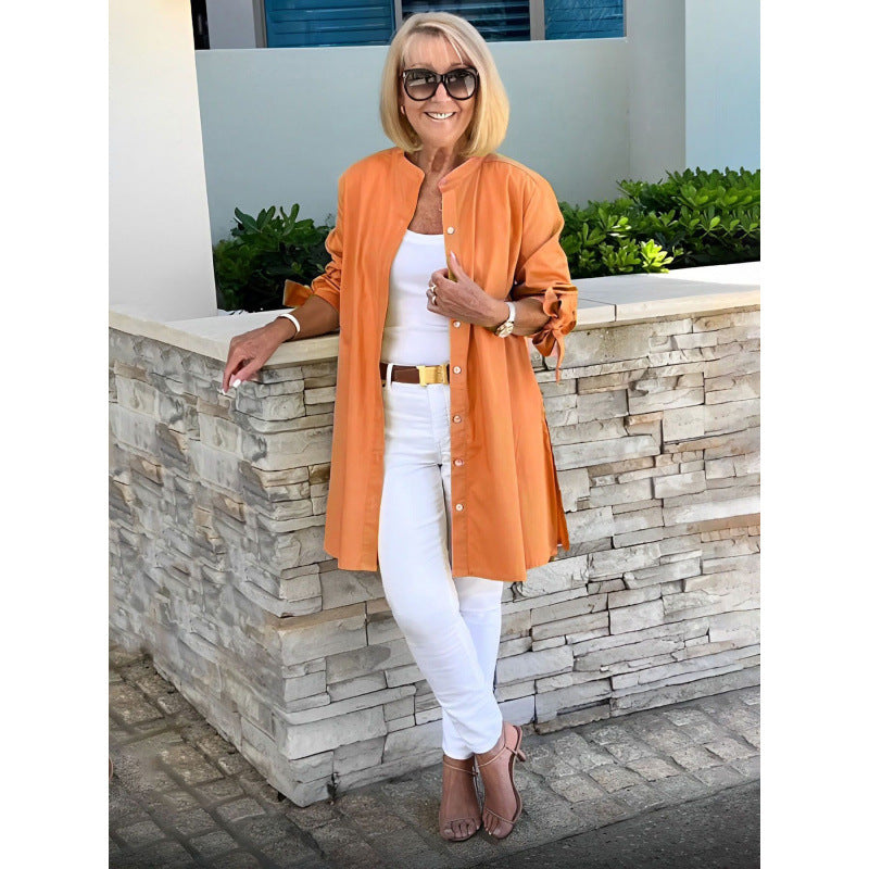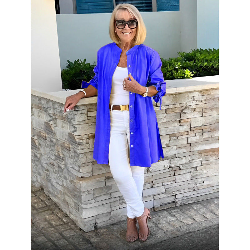 • Design: Modern långblazer med elastiska ärmar som enkelt kan bäras över varje outfit.