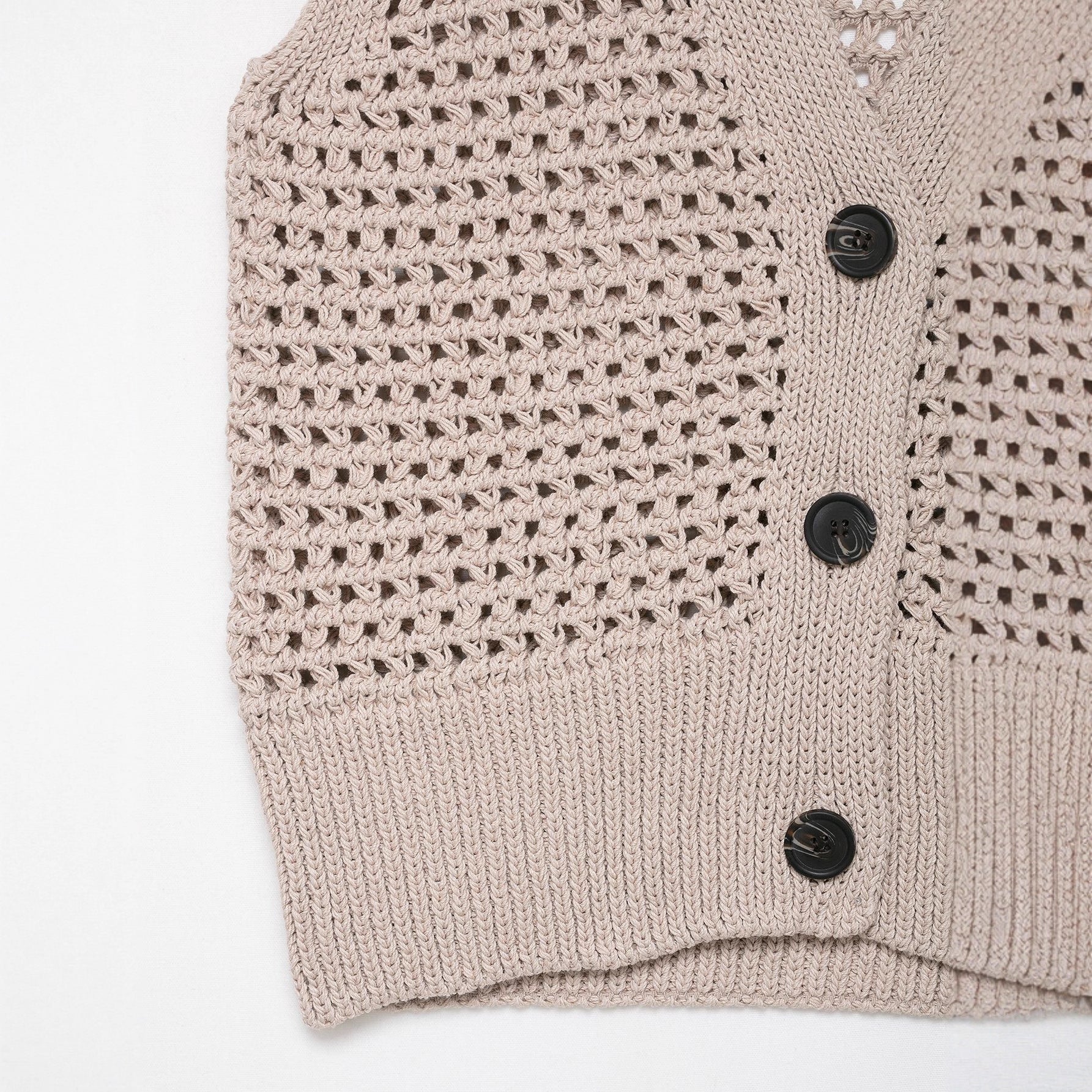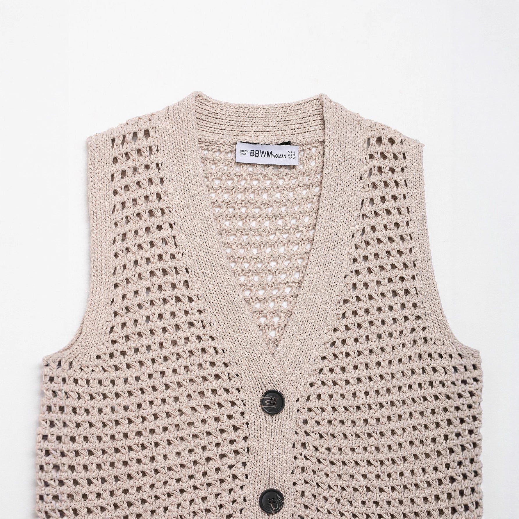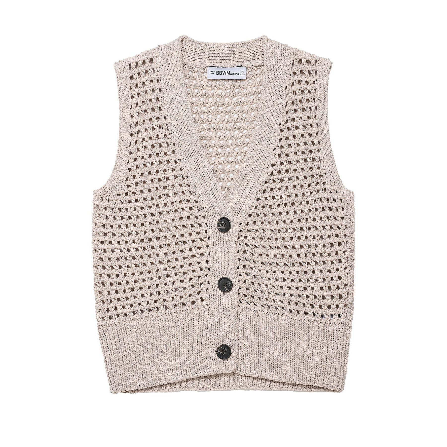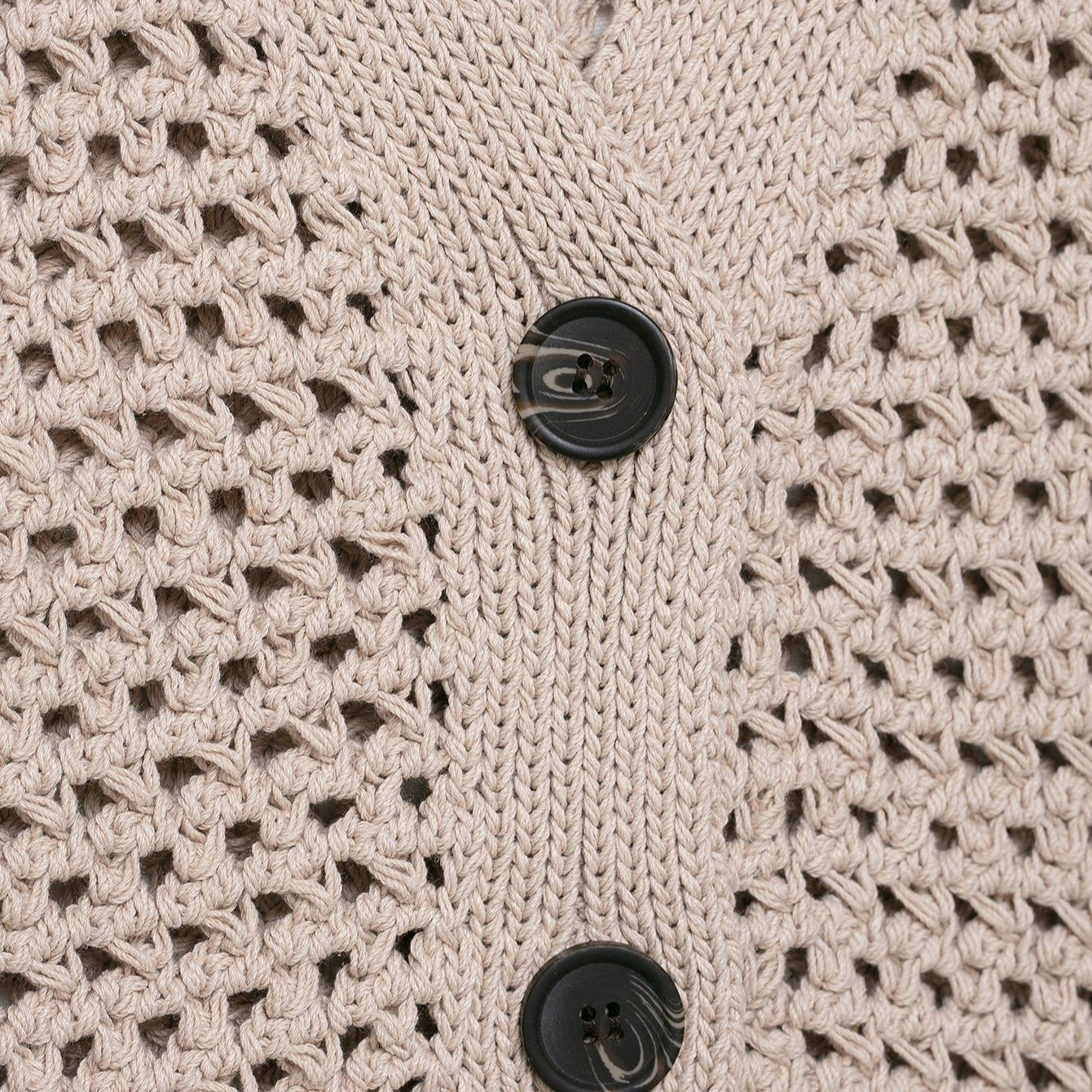 Design: Öppen stickad mönster med v-ringning och knappstängning