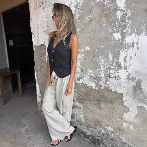 Allsidigt kombinerbar: Kombinera västen med olika underdelar, från stiliga byxor till somriga kjolar, beroende på tillfälle och humör.