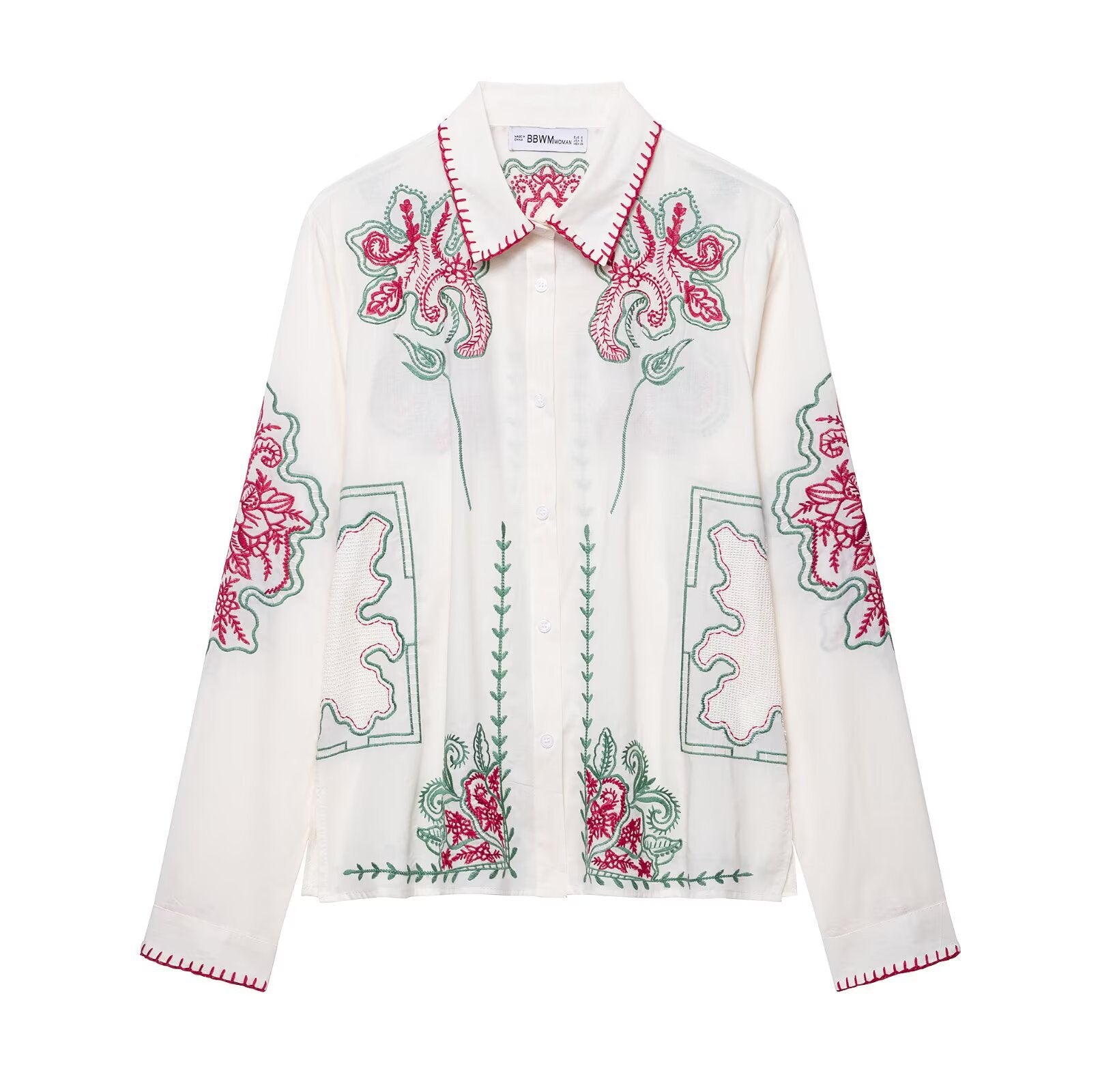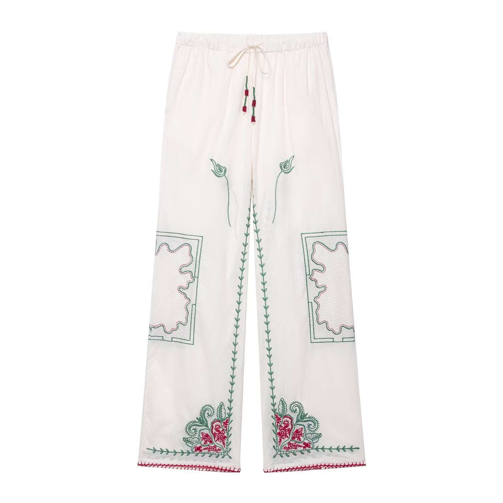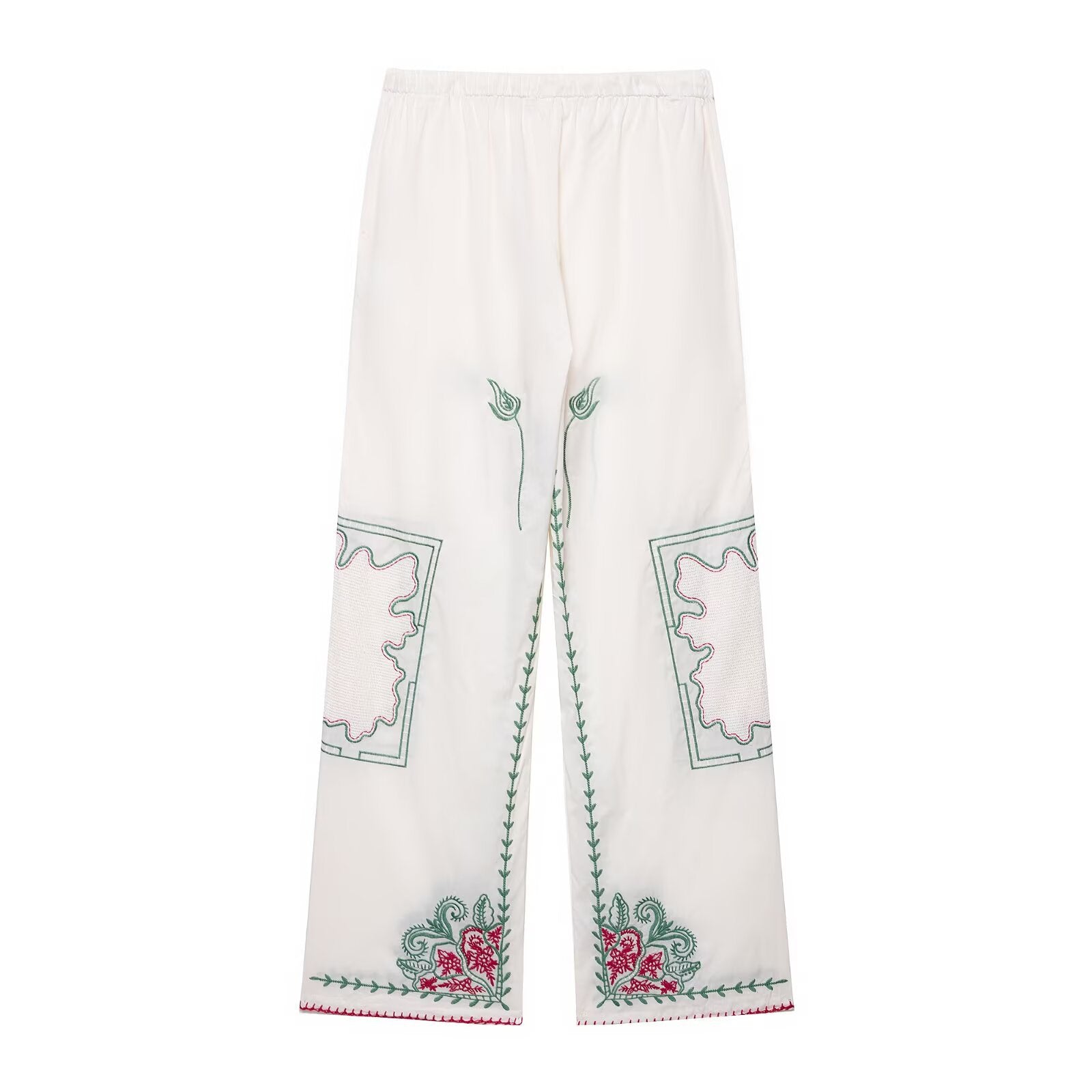 • Blommig broderidesign: Lekfulla broderier längs benpartierna ger byxorna en feminin touch.