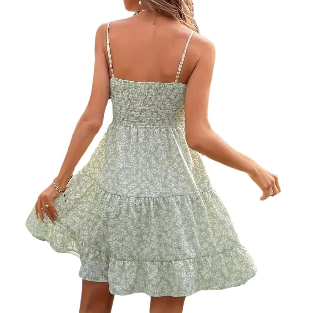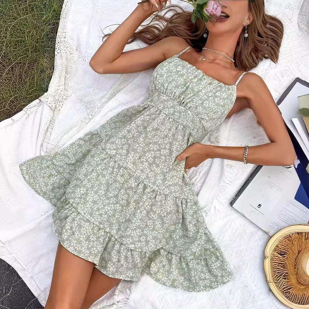 Damernas Luftig blommig klänning med volanger och spaghettiband Eva Jonsson