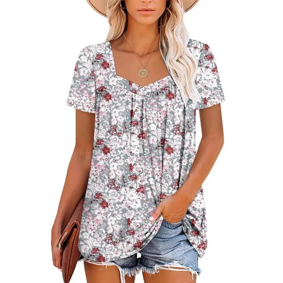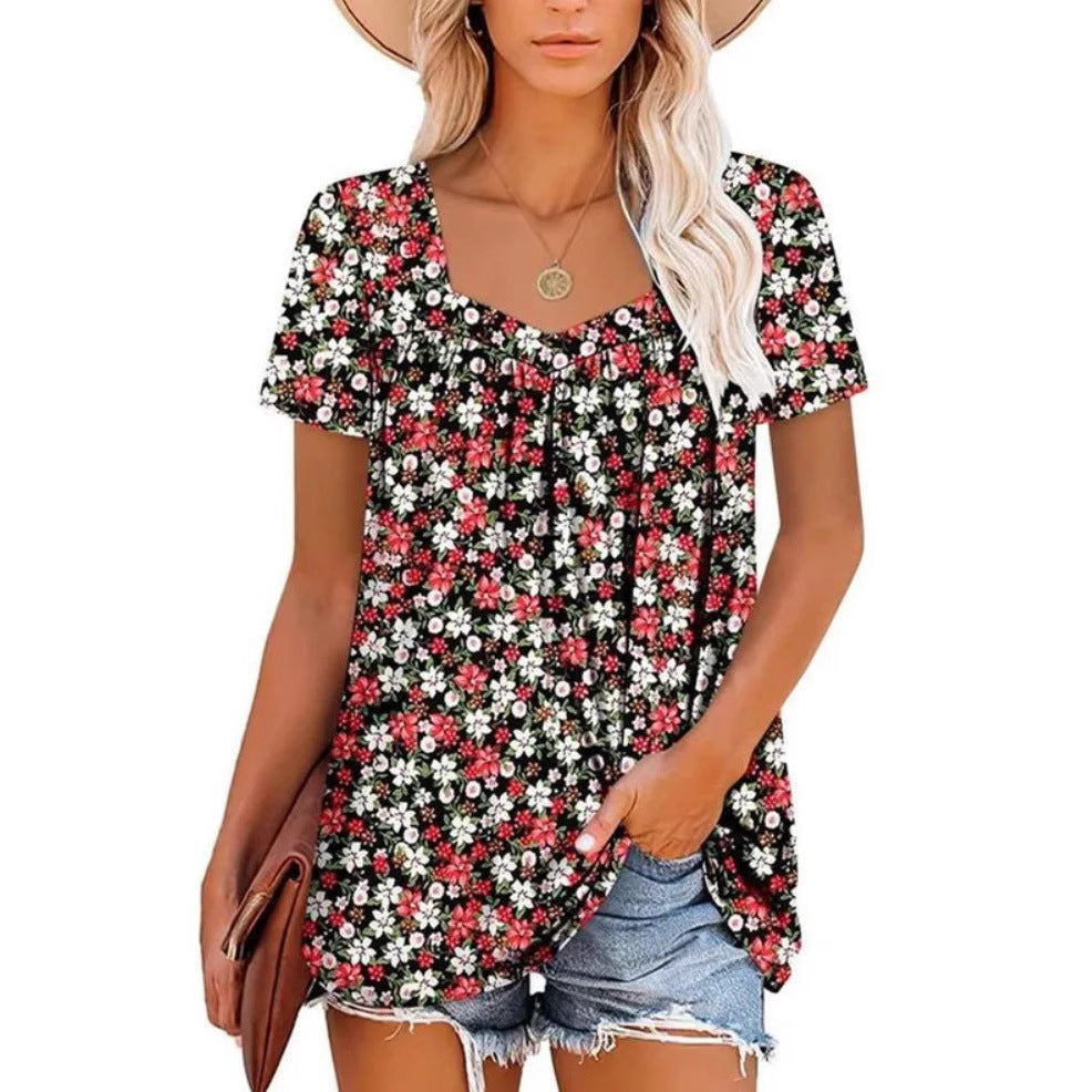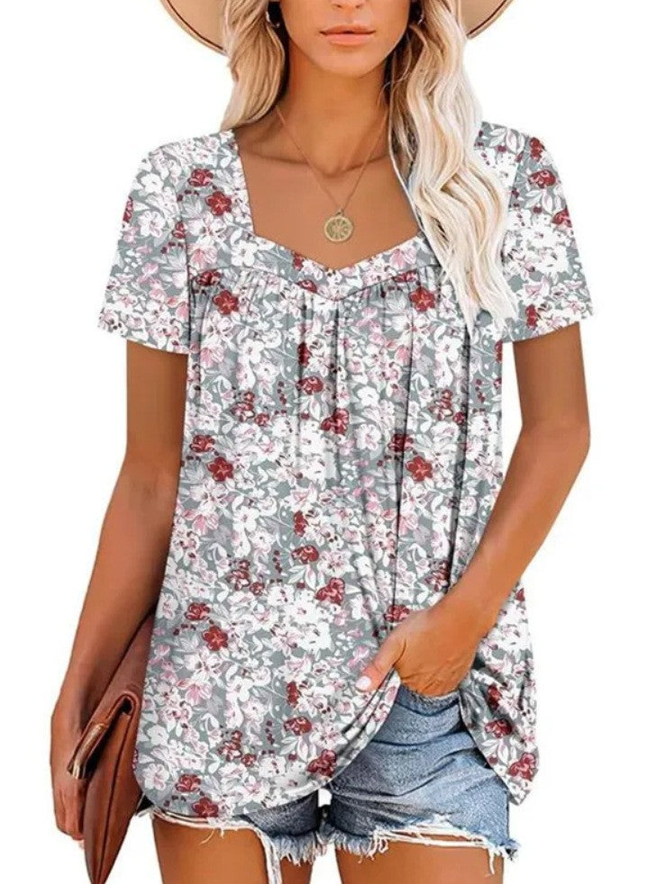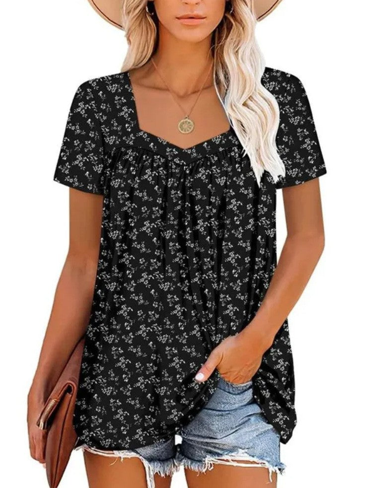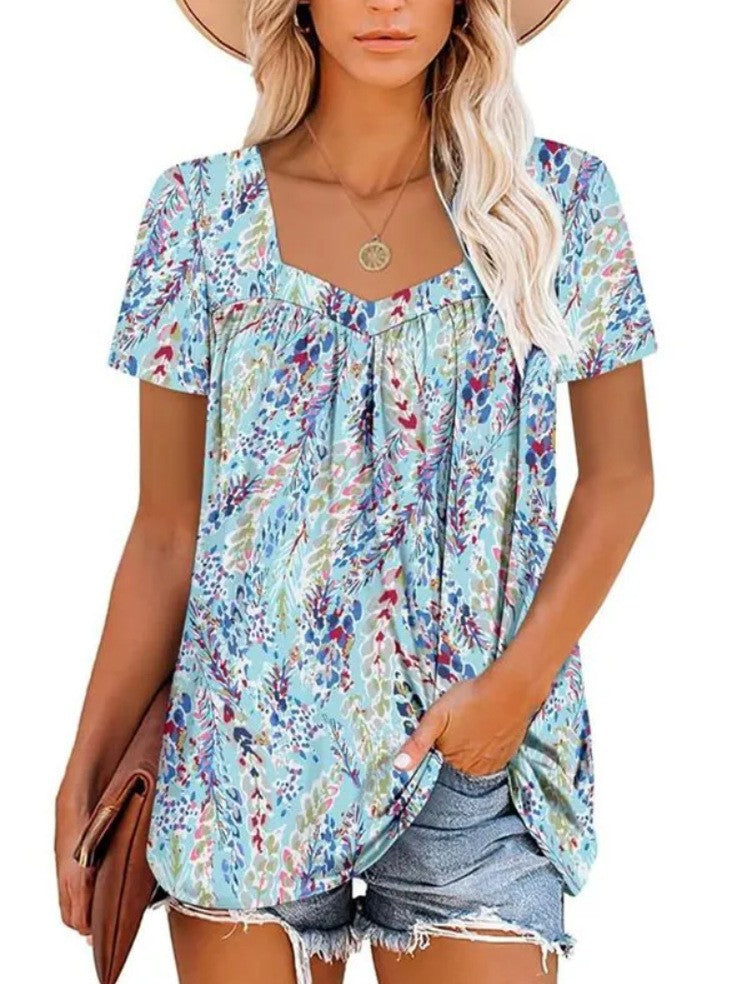Damernas luftiga kortärmade topp med blommönster Eva Jonsson