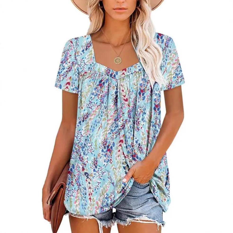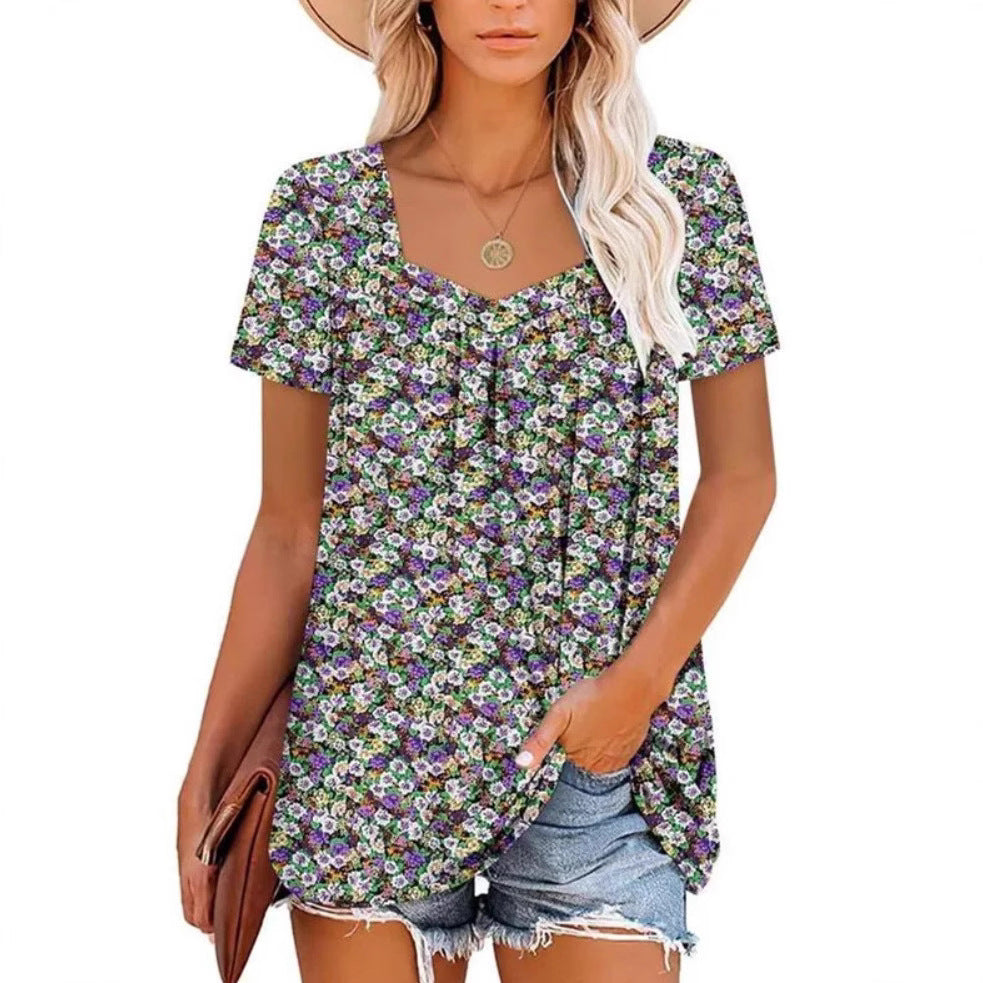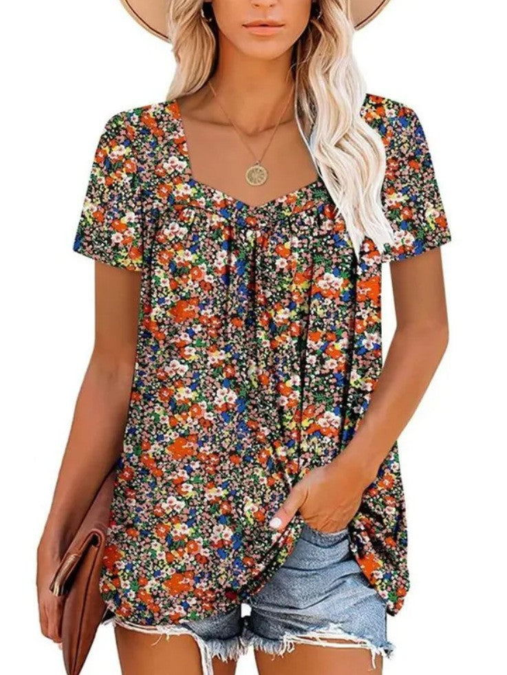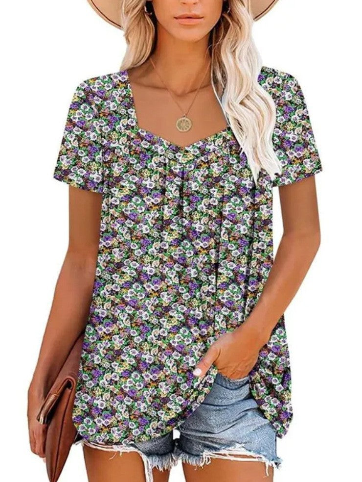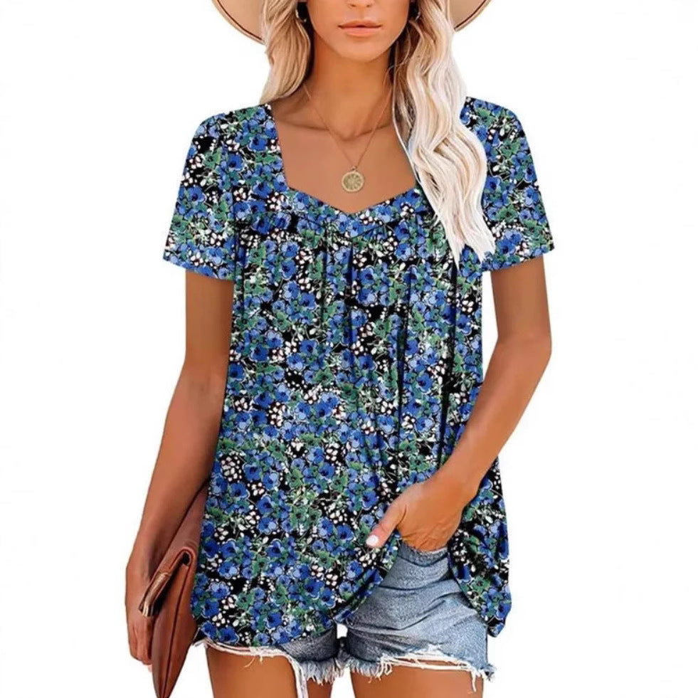 Damernas luftiga kortärmade topp med blommönster Eva Jonsson