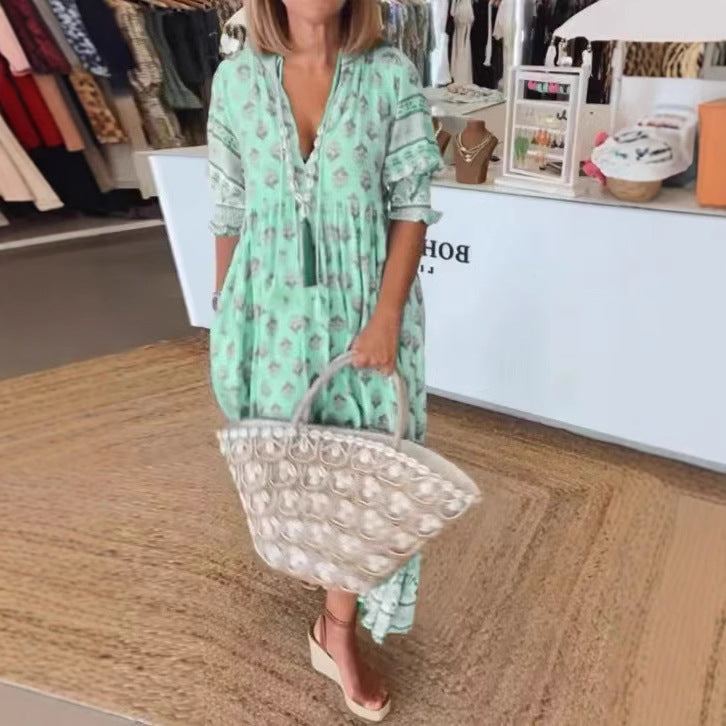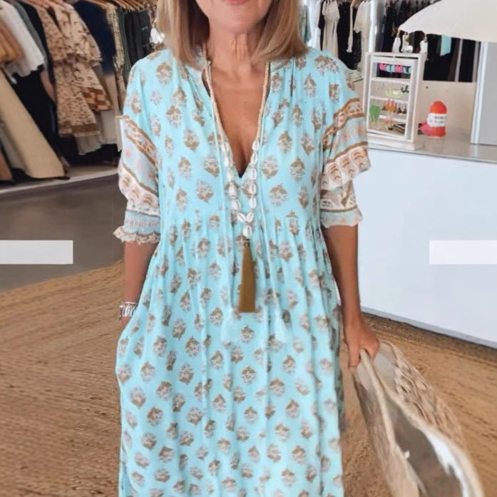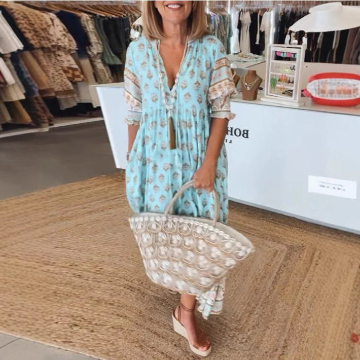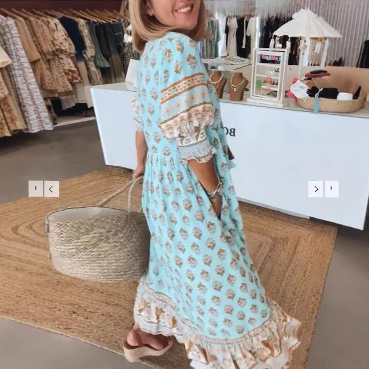 Denna maxiklänning är perfekt för stranden, trädgårdsfester eller bara för en avslappnad dag i stan. Kombinera den med en lätt halsduk eller en hatt för att fullända din look. Unna dig denna måsten för din sommar garderob!