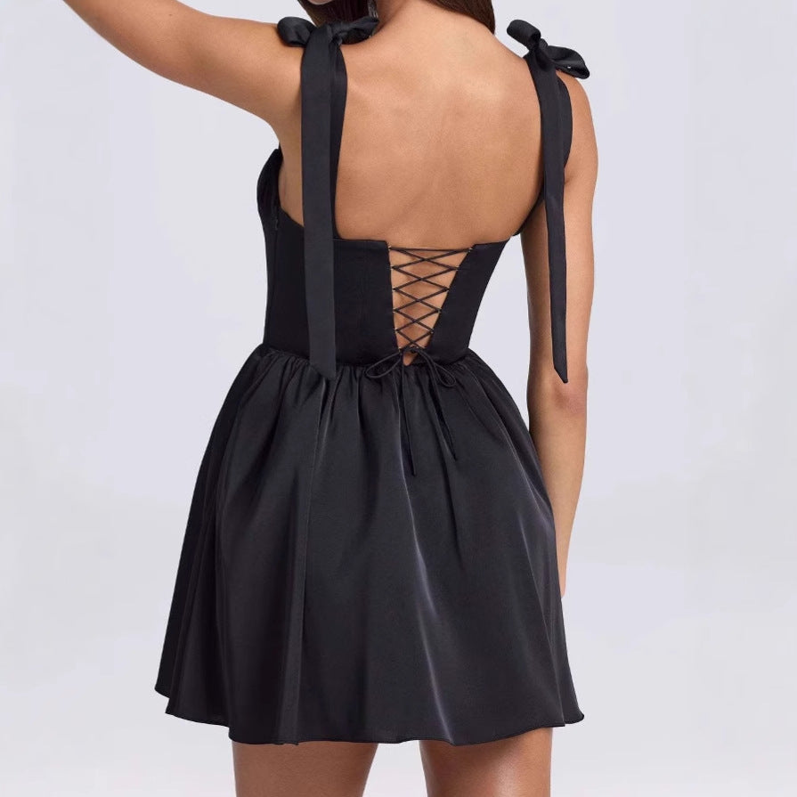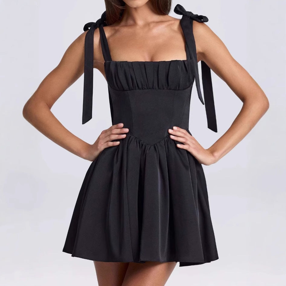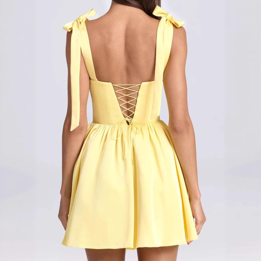 Upptäck vår dam luftiga sommarklänning med en snygg ryggutskärning och bedårande rosetter, som är perfekt för varma dagar och speciella tillfällen. Denna klänning kombinerar stiligt design med hög bärkomfort och ger dig en fräsch, elegant look.