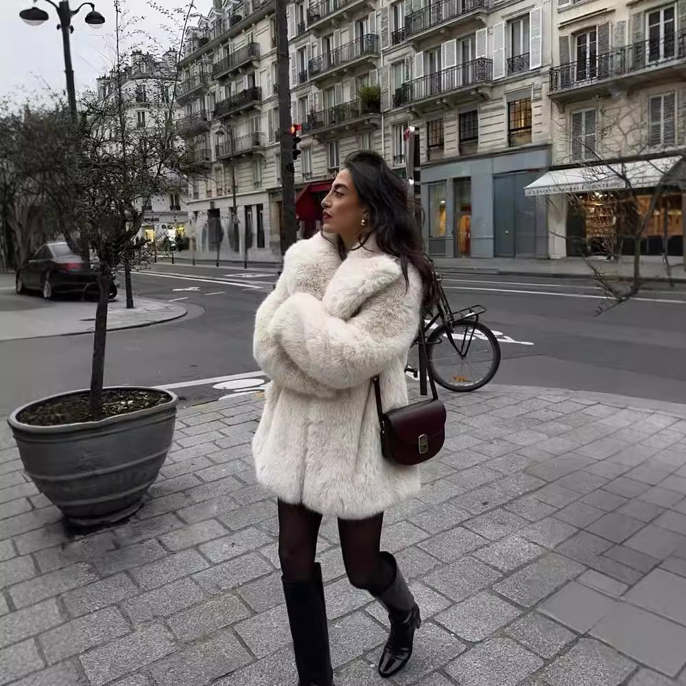 Damernas lyxiga konstpälsjacka med eleganta slag och djup krage Eva Jonsson