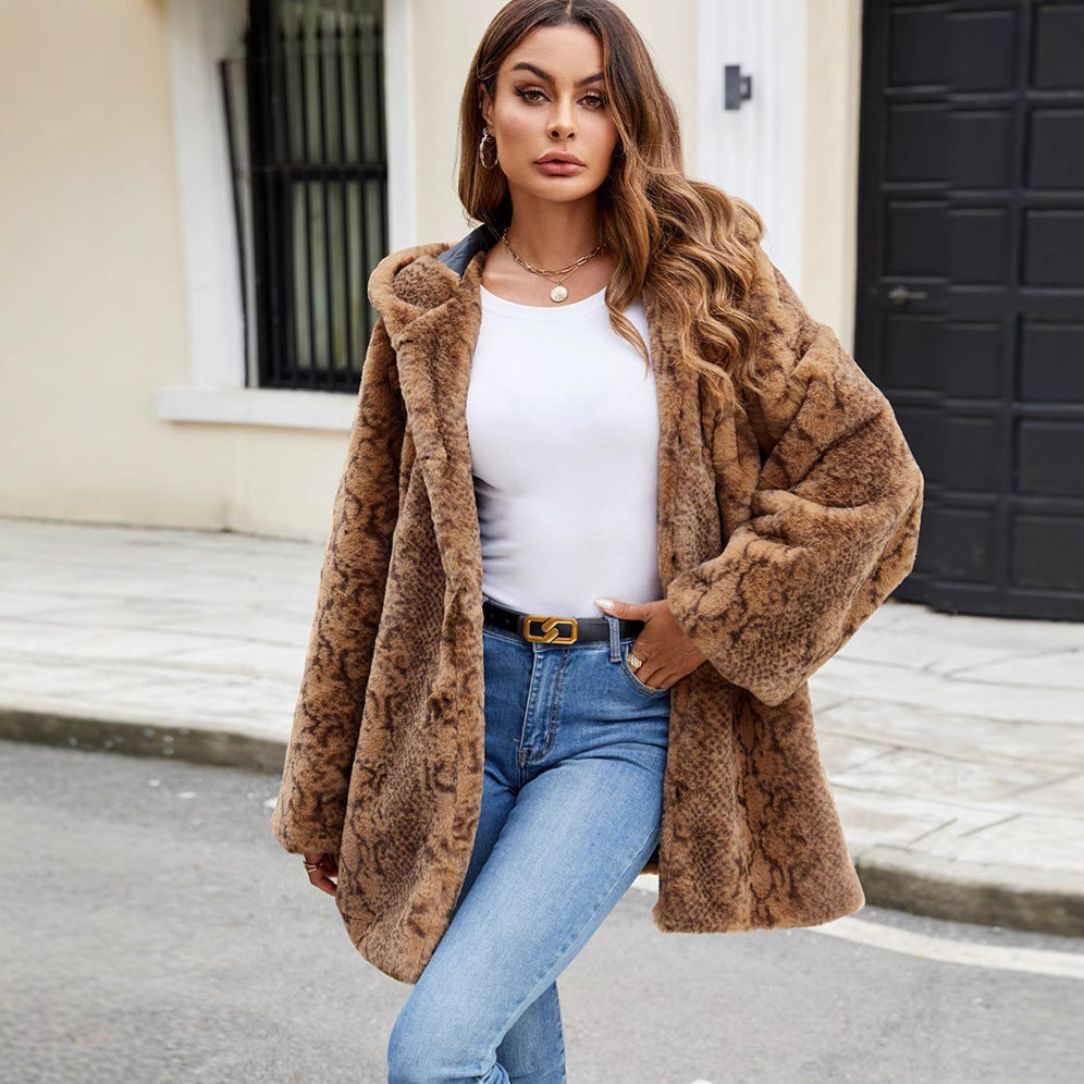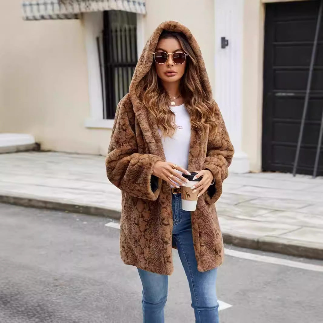 Upptäck den perfekta följeslagaren för modevisningar: vår damlyxiga konstpälsjacka med huva. Tillverkad av högkvalitativt, mjukt konstpäls erbjuder denna jacka inte bara en stilig look, utan också optimal komfort under de kallare månaderna.