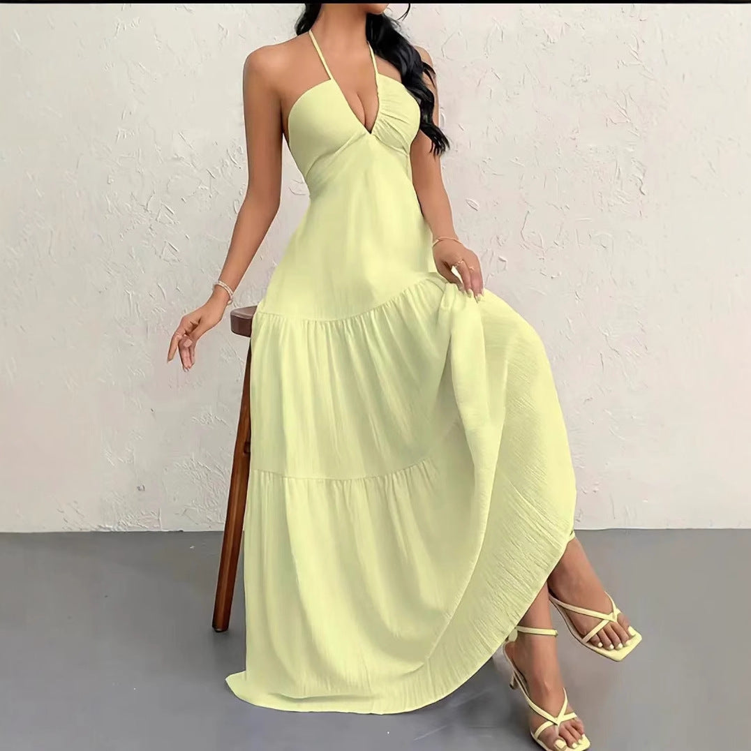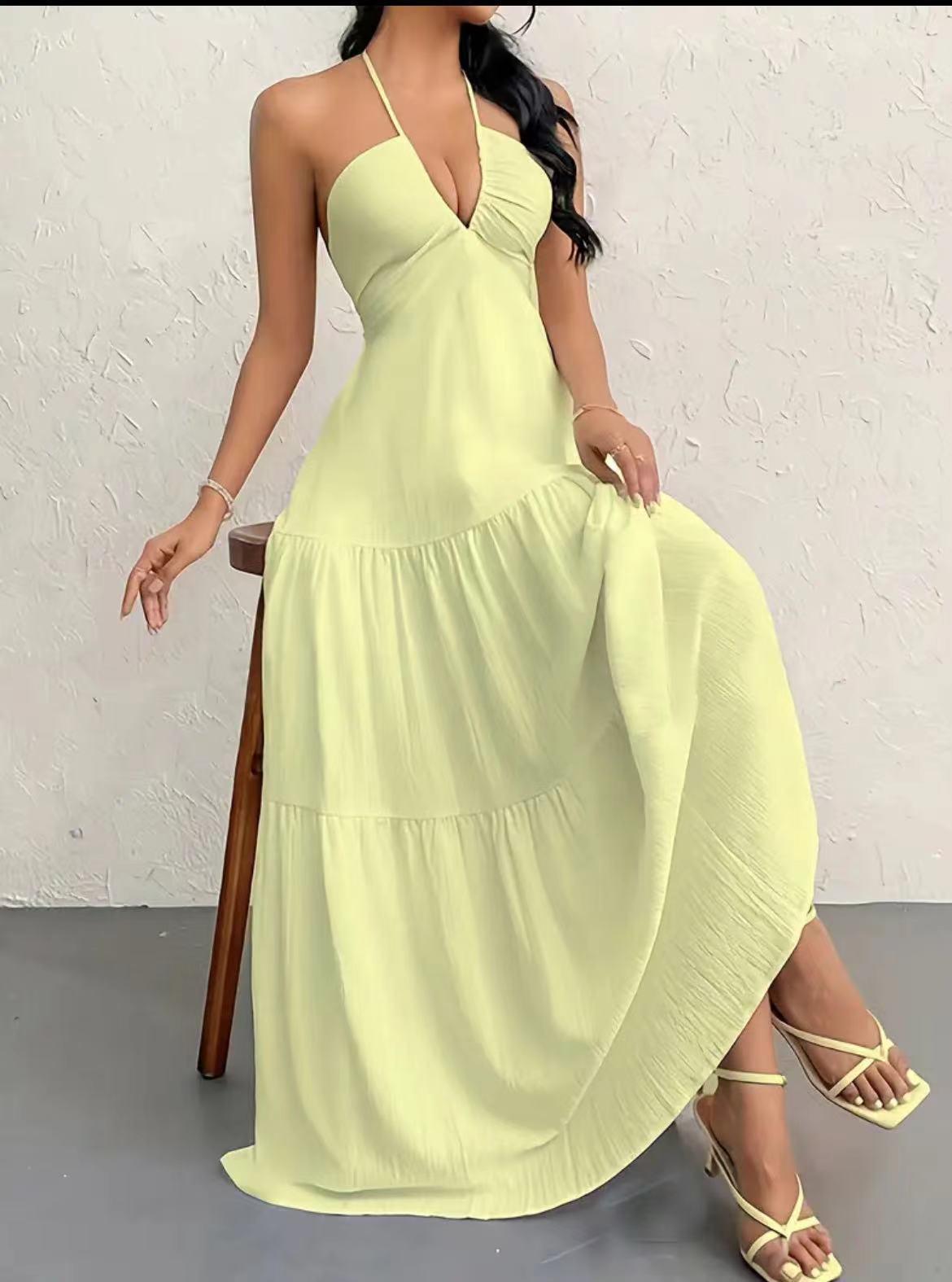 Ge din garderob en touch av elegans och stil med denna tidlösa maxiklänning. Perfekt att kombinera med dina favoritsandaler eller högklackade skor för en glamourös look!