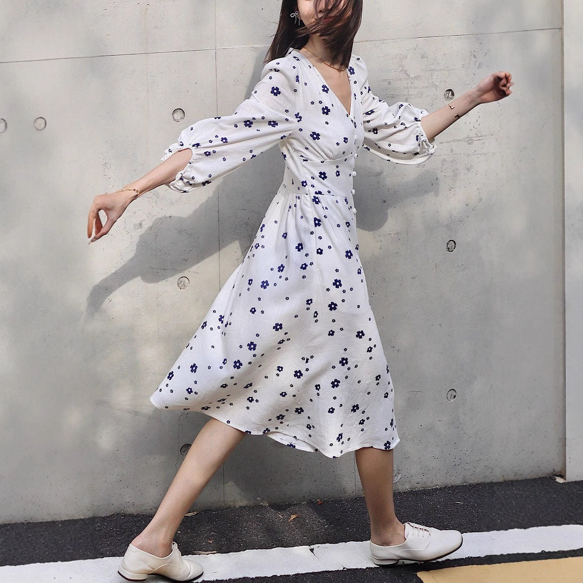 Damernas maxikjol med blomstertryck och eleganta puffärmar Eva Jonsson