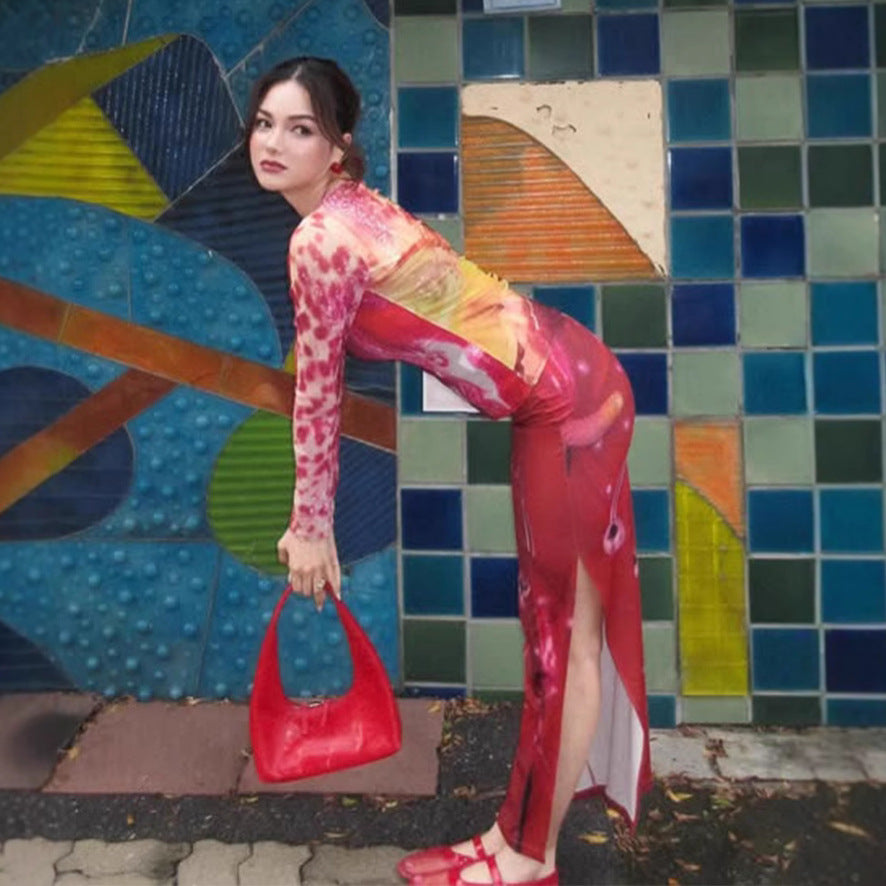 Upptäck den trendiga dammaxiklänningen med kreativ grafiktryck från Eva Jonsson. Denna unika klänning förenar komfort och stil, perfekt för varje moderiktig tillfälle. Det lyxiga tyget är elastiskt och anpassat, vilket skapar en smickrande siluett.