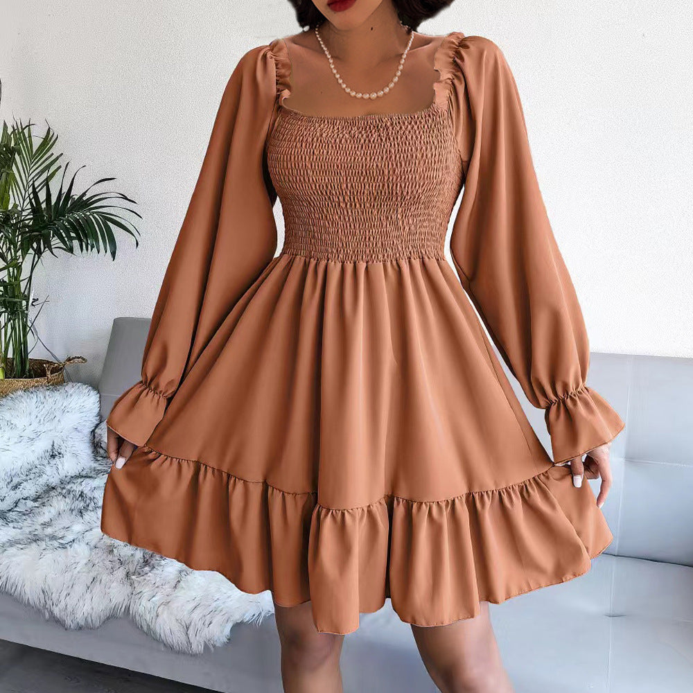 - Lekfulla volanger vid fållen ger klänningen en romantisk känsla