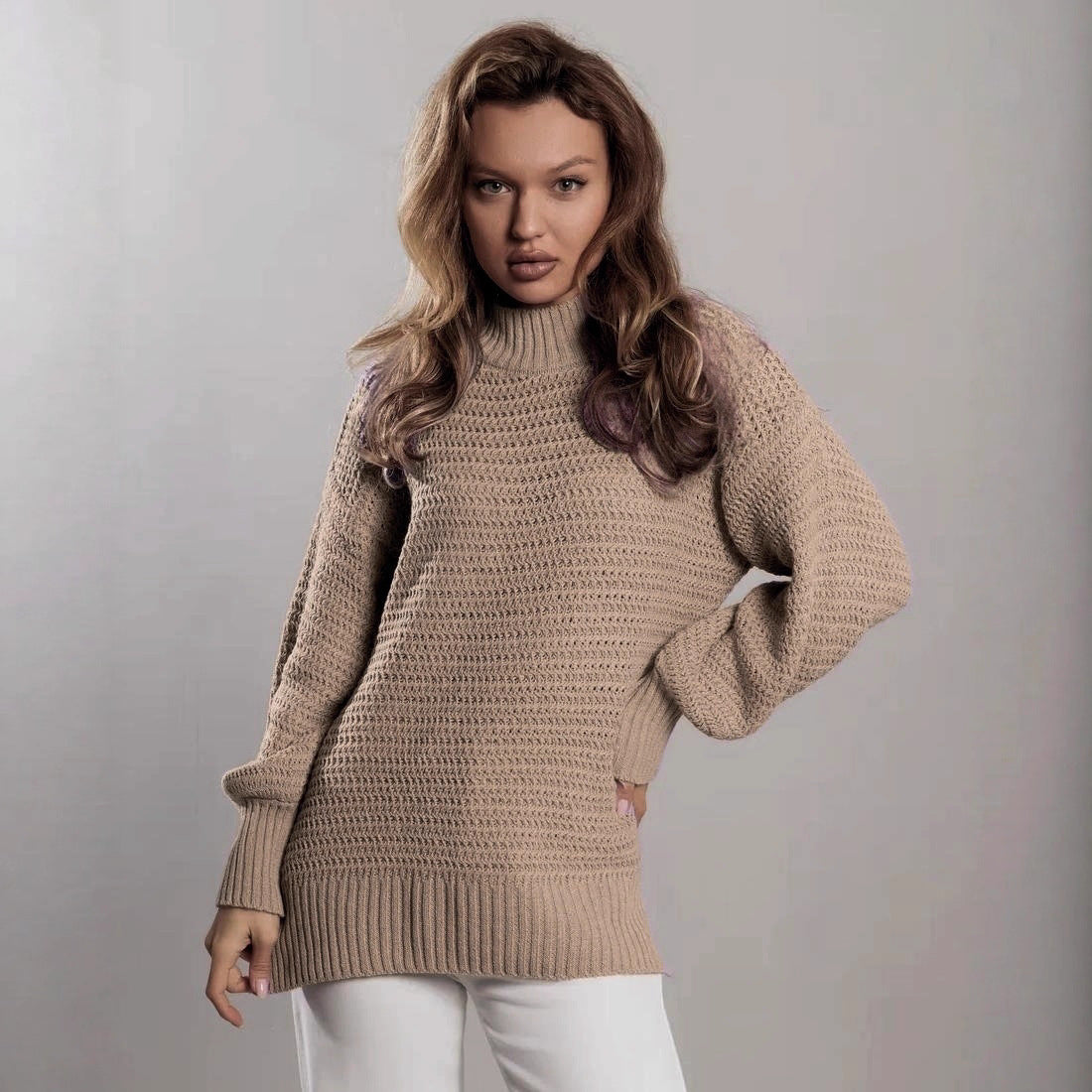 Upptäck vår dammode stickad tröja med strukturerat mönster och lös passform från Eva Jonsson, som erbjuder både stil och komfort. Denna tröja är perfekt för kyligare dagar och kan kombineras på många sätt.