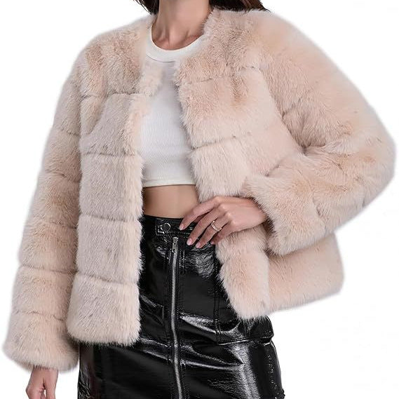 • Lyxigt material: Tillverkad av högkvalitativ fuskpäls, ger jackan en behaglig känsla vid kalla temperaturer.